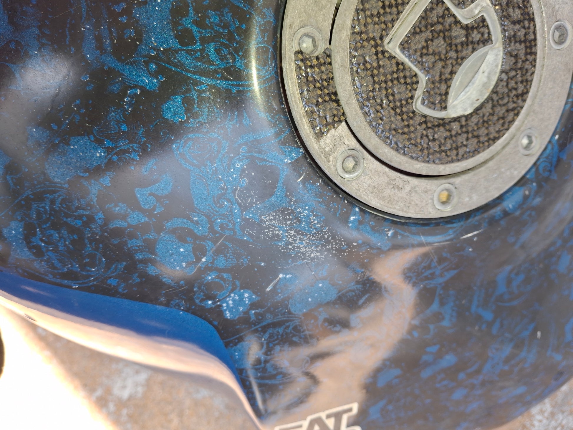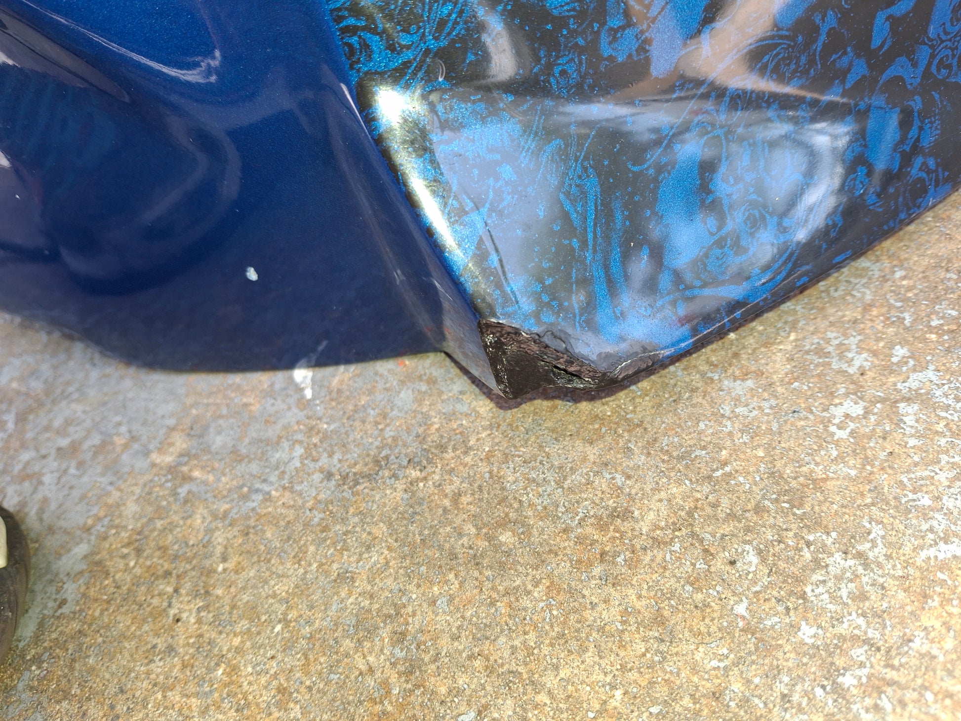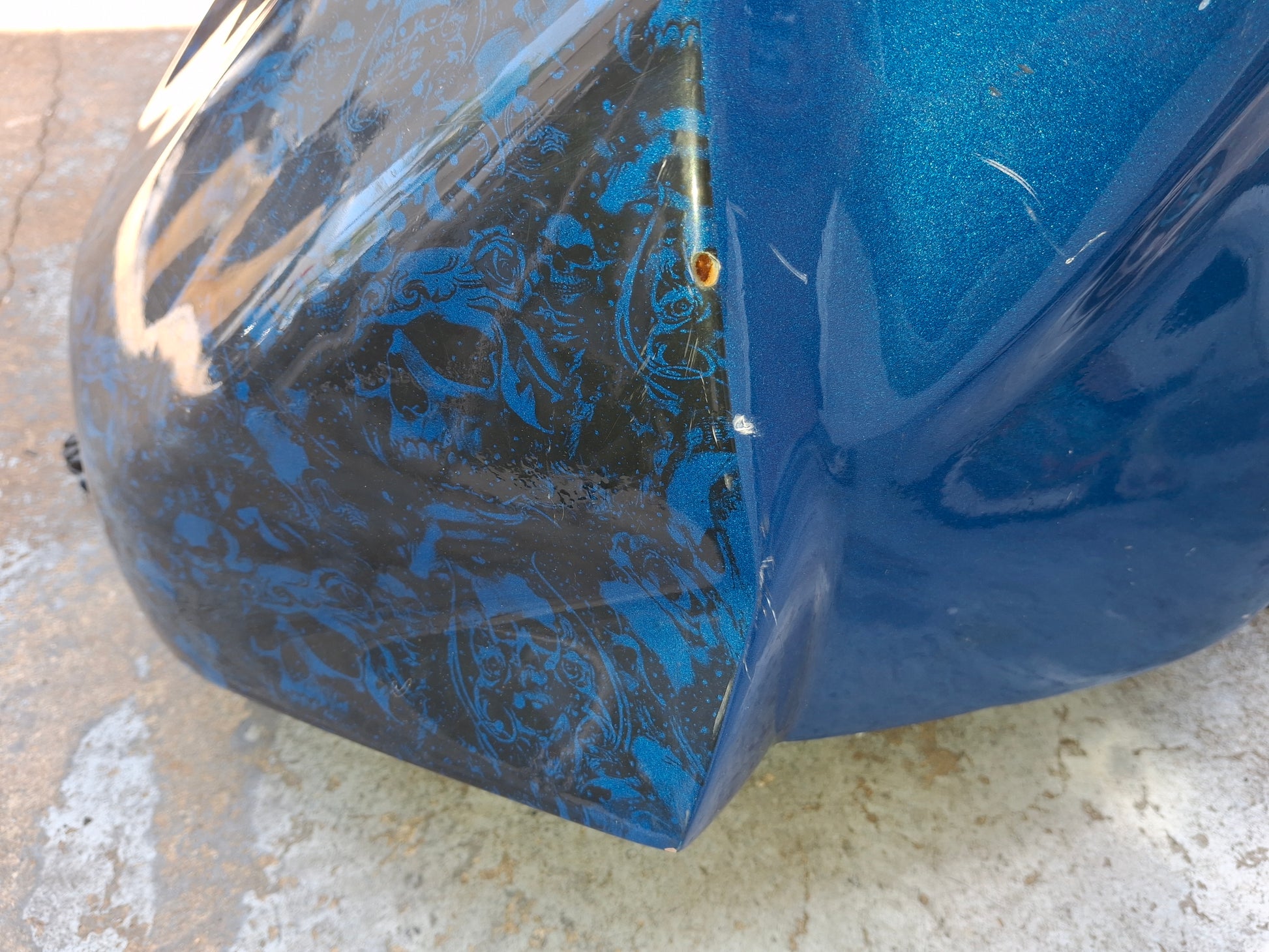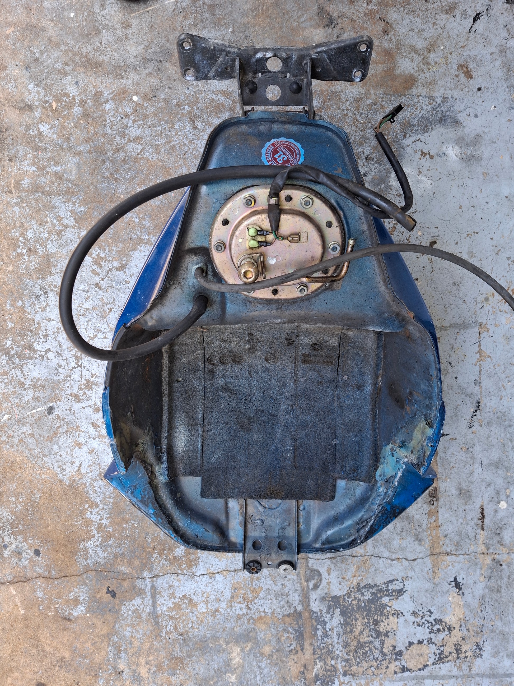 This listing is for the gas tank off of a Honda CBR 954 (fuel pump not included) . It has been customized , as you can see in the pictures the sides are kind of flared out. It has a custom paint job and we do have the matching tail and front fender available, there were no side fairings. There are some scratches on the tank due to normal wear and tear. Some of the pain is chipped, and you can see one of the flares on the side of the tank is broken at the tip. There will be other signs of wear as well. Please look closely at all pictures and the video for the best description of the tank. This listing is for the gas tank only the fuel pump is sold separately. If you are interested in adding the fuel pump to this order please let us know. Please look at all pictures and ask all questions prior to purchase.
