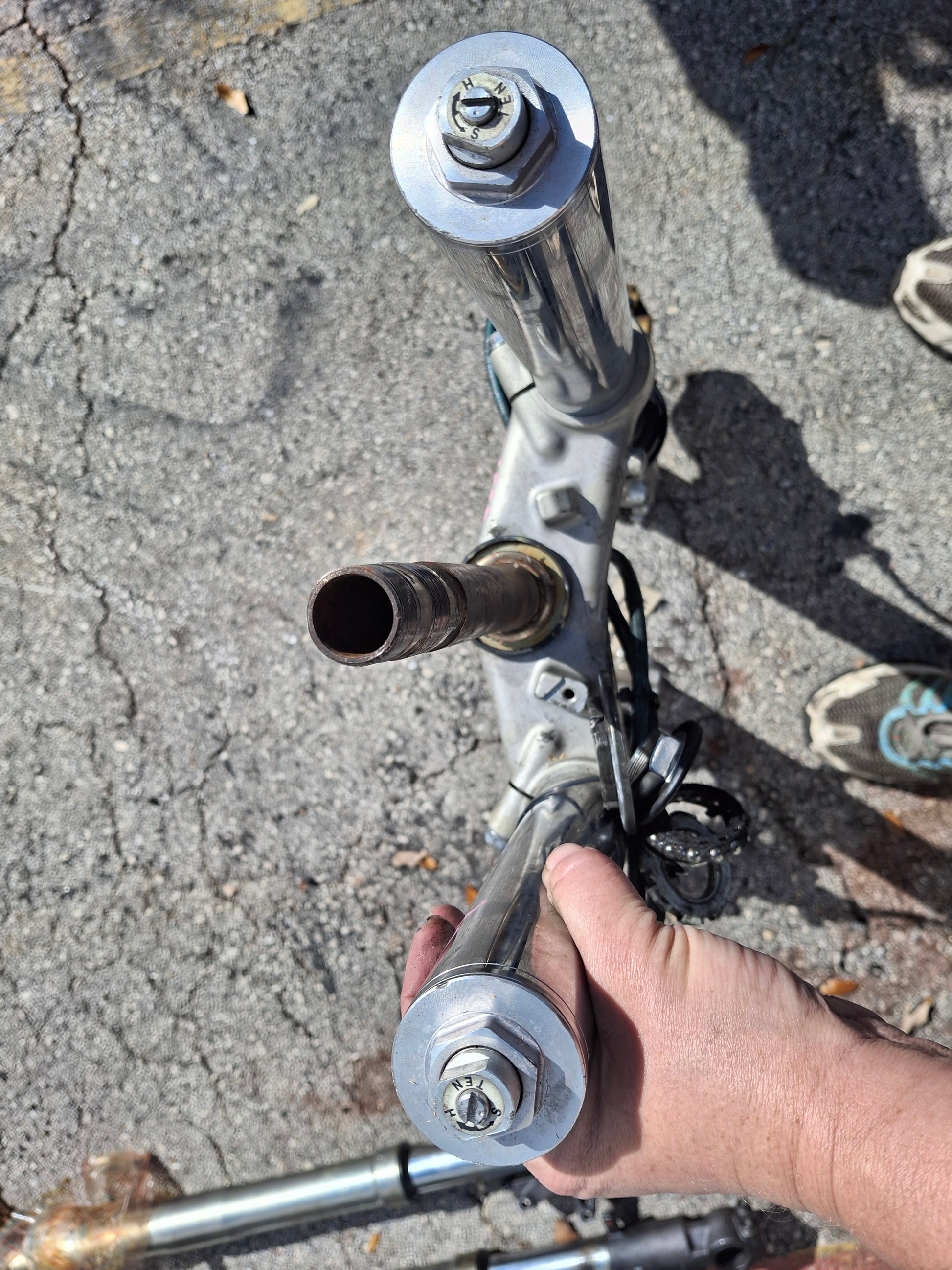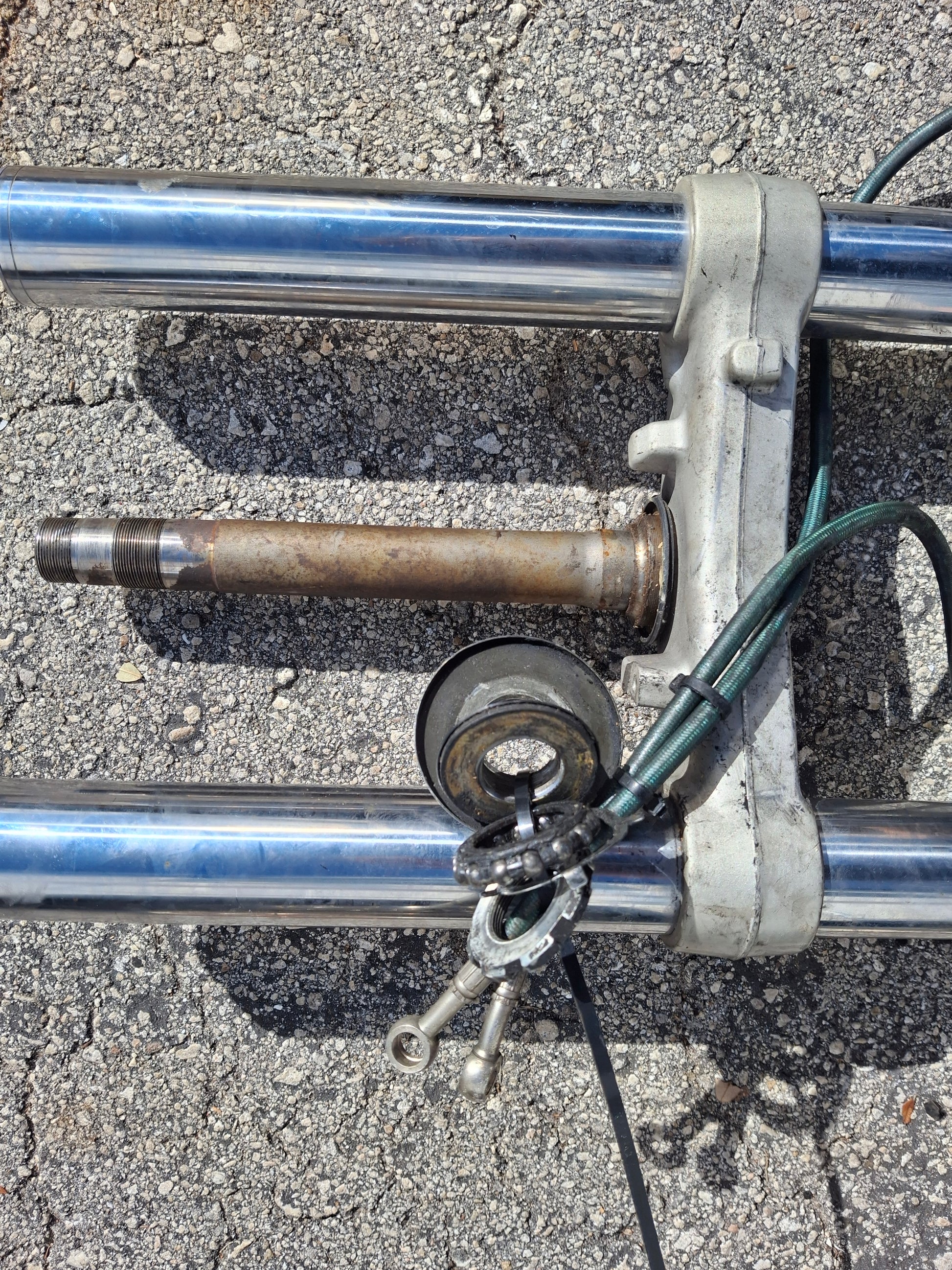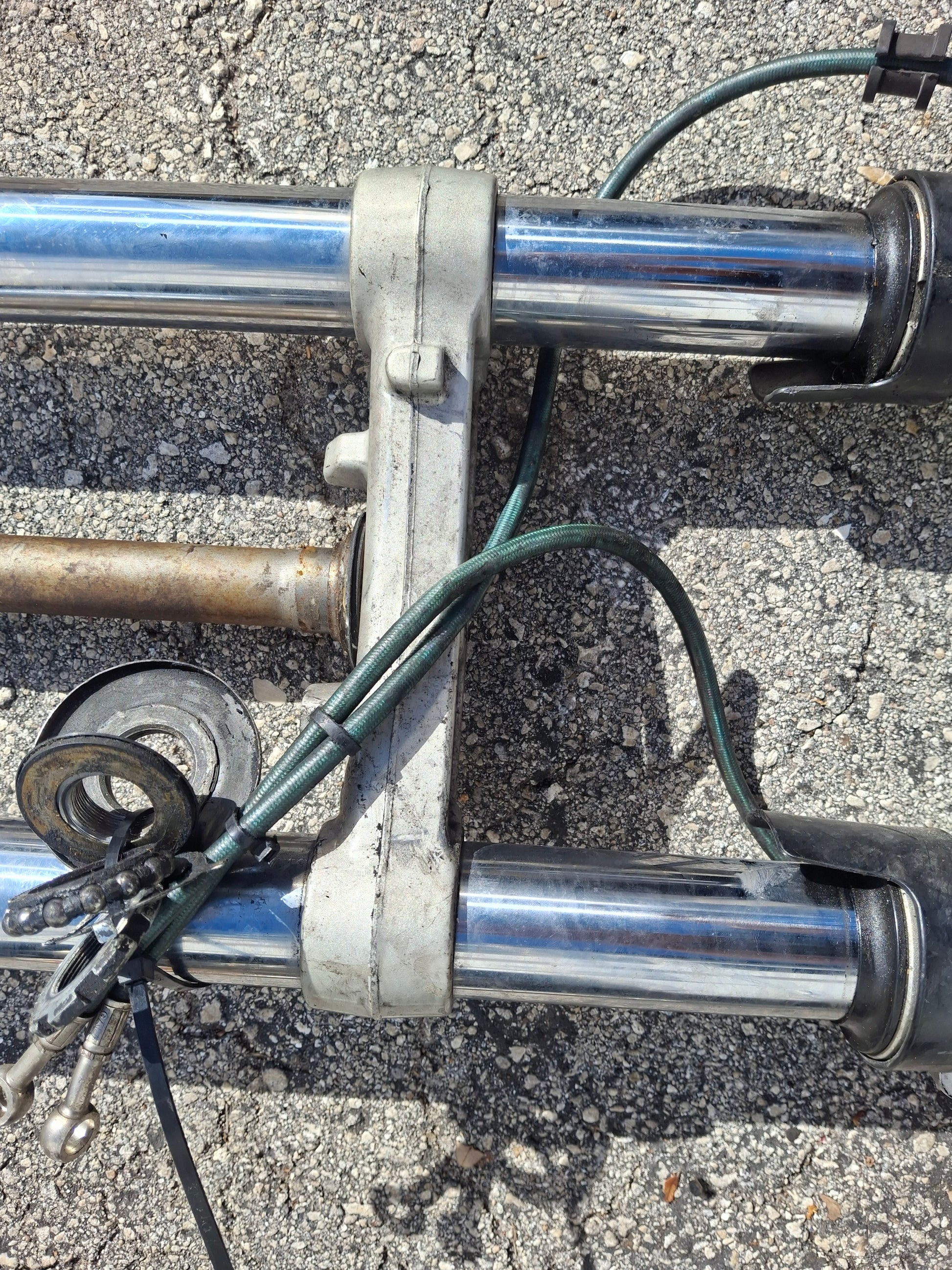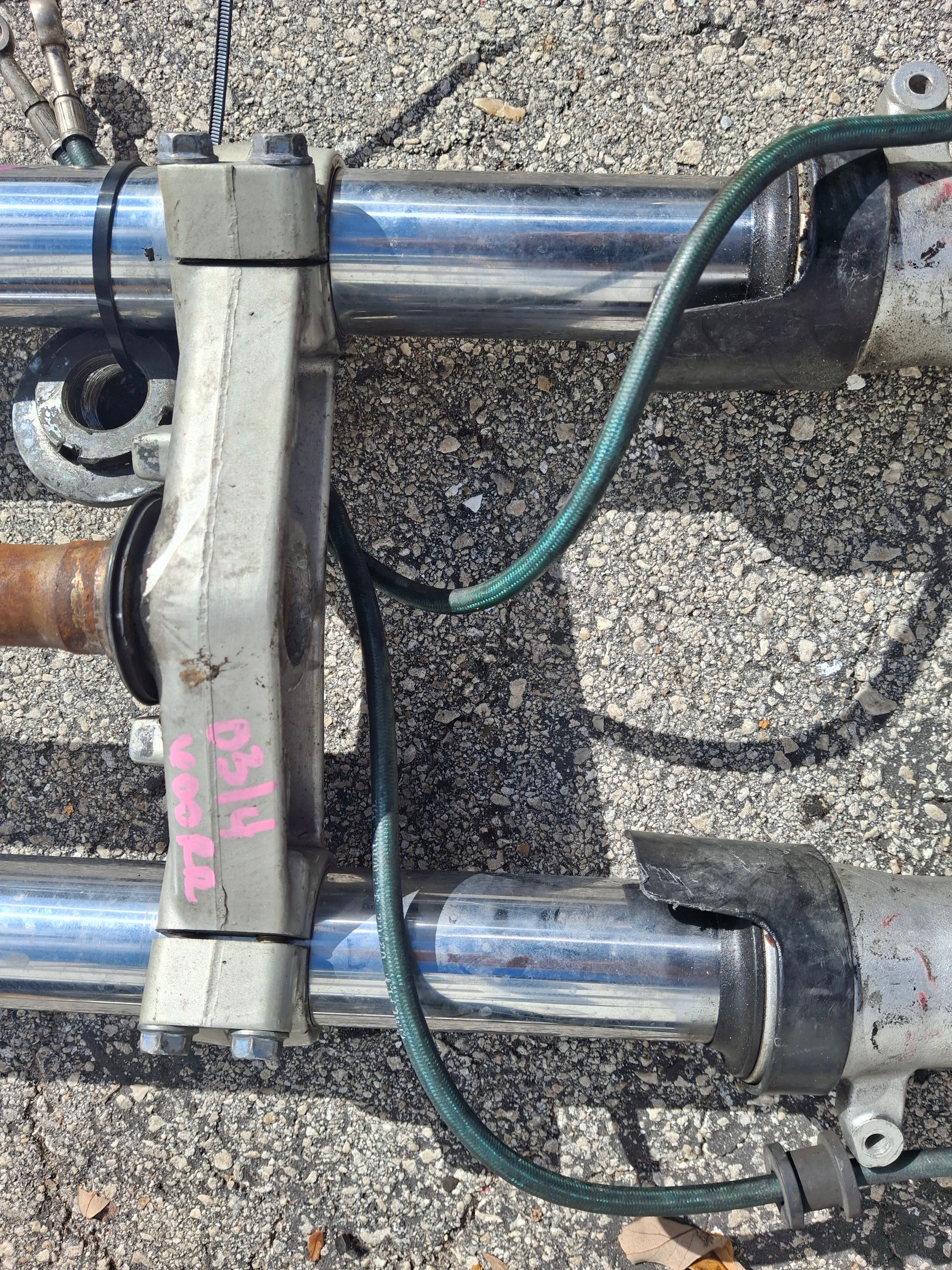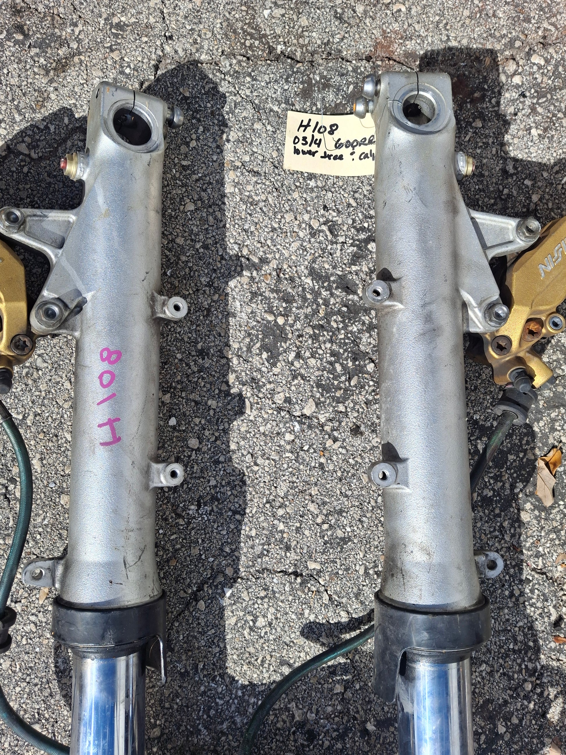 SOLD This listing is for a set of used OEM Front forks, calipers and lower triple tree off of an 03 04 Honda CBR600RR. These forks are used and will show signs of wear and tear such as scratches. These forks are straight and could use a cleaning. The seals do not appear to be leaking but we do not guarantee them to be good. The calipers are in good used condition, but we do not recommend using the brake pads if there are any in the calipers, these should be changed prior to use. Please look closely at all pictures and ask all questions prior to purchase.
