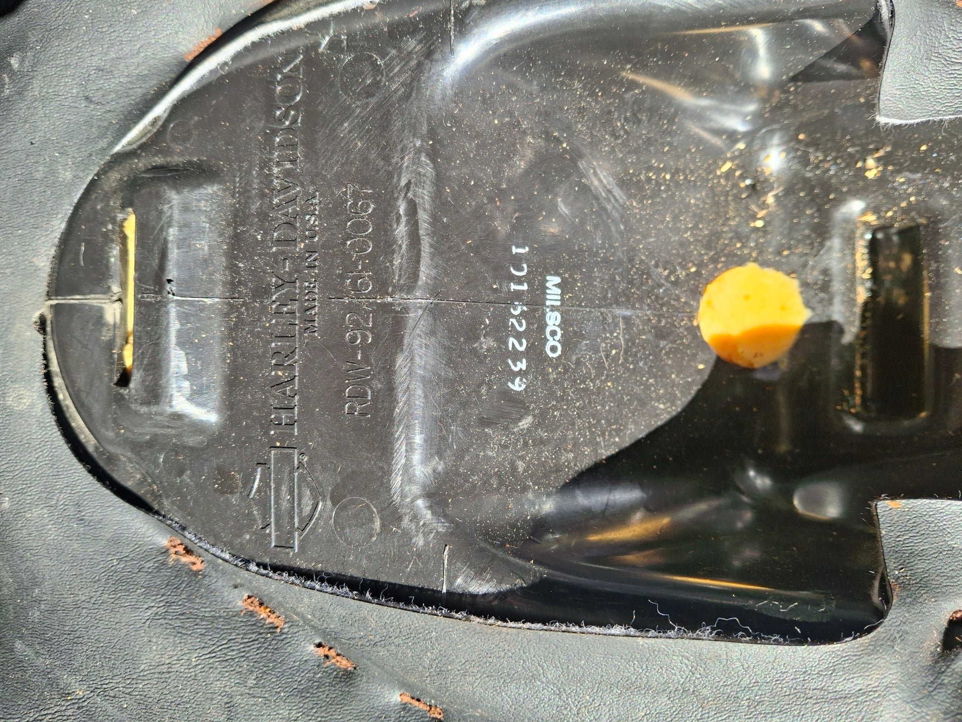 This listing is for the rear seat off of a Harley Davidson V-Rod. The part number on the bottom of the item is RDW-9261-0067, I do believe this is just a generic part number that Harley puts on a lot of their seats. As you can see in the pictures this seat is dirty. I will clean it as well as I can prior to shipping, it has been sitting in a trailer for quote a while. I did not see any rips or tears in the fabric. Please look closely at all pictures and ask all questions prior to shipping.