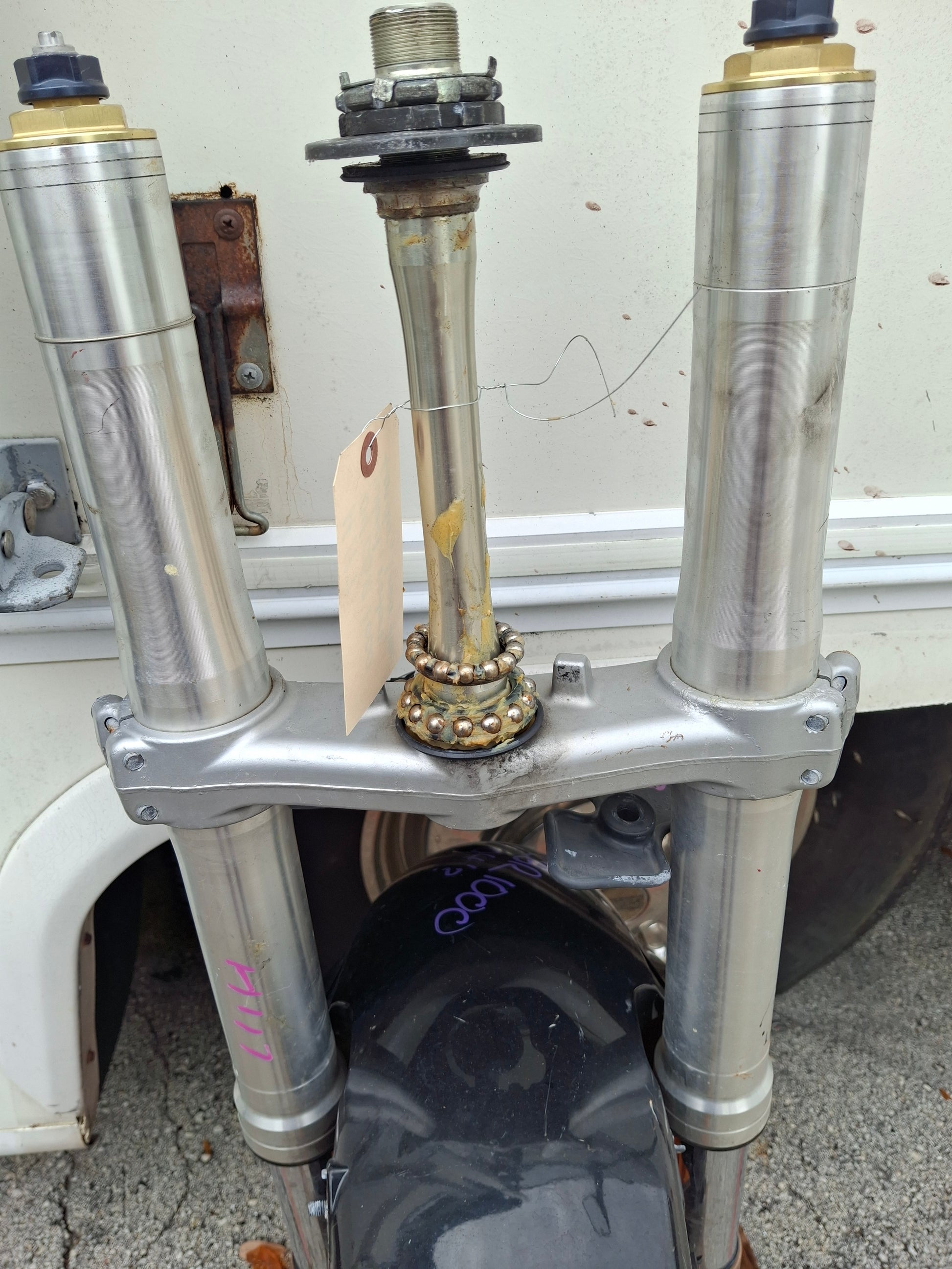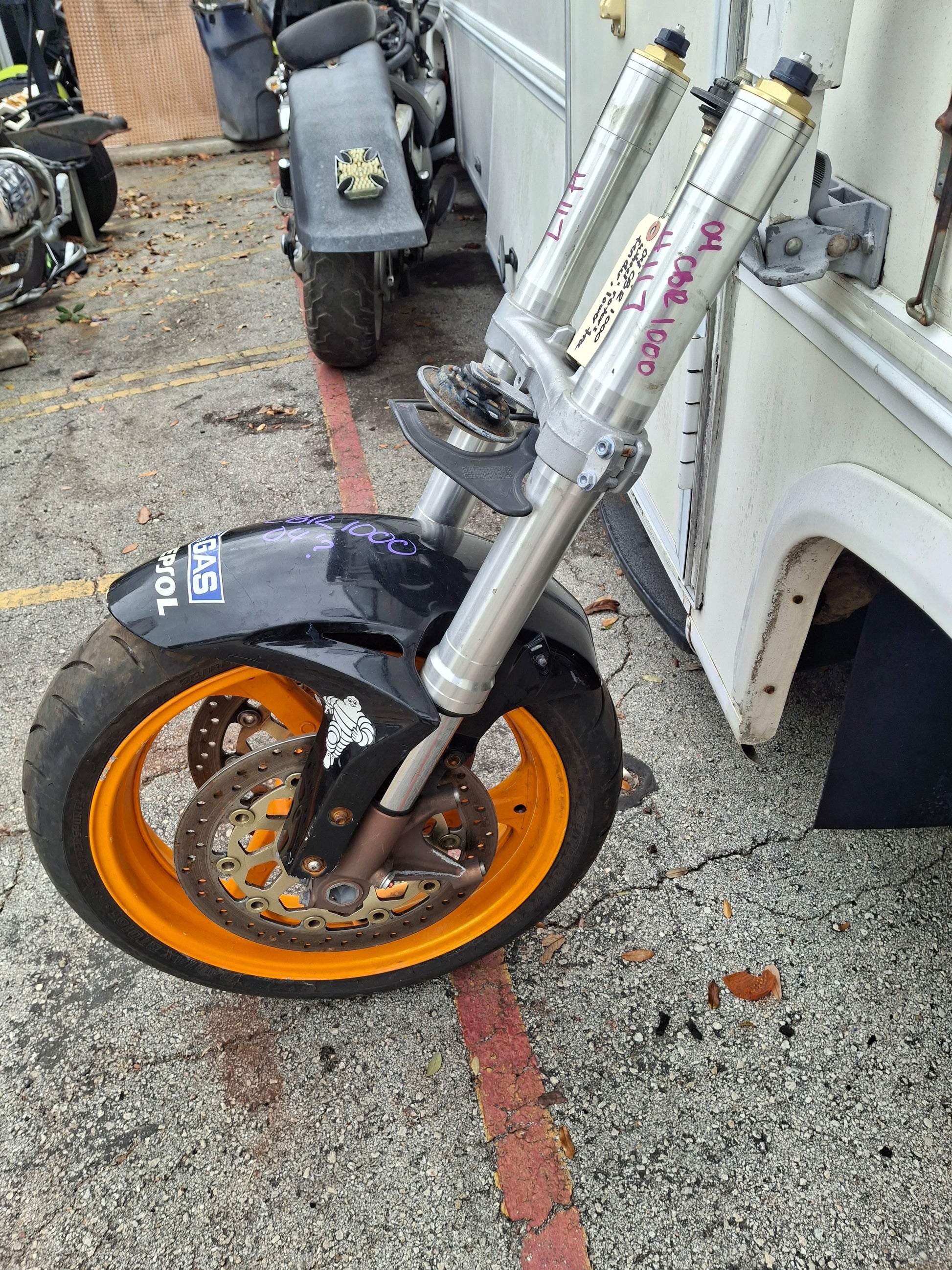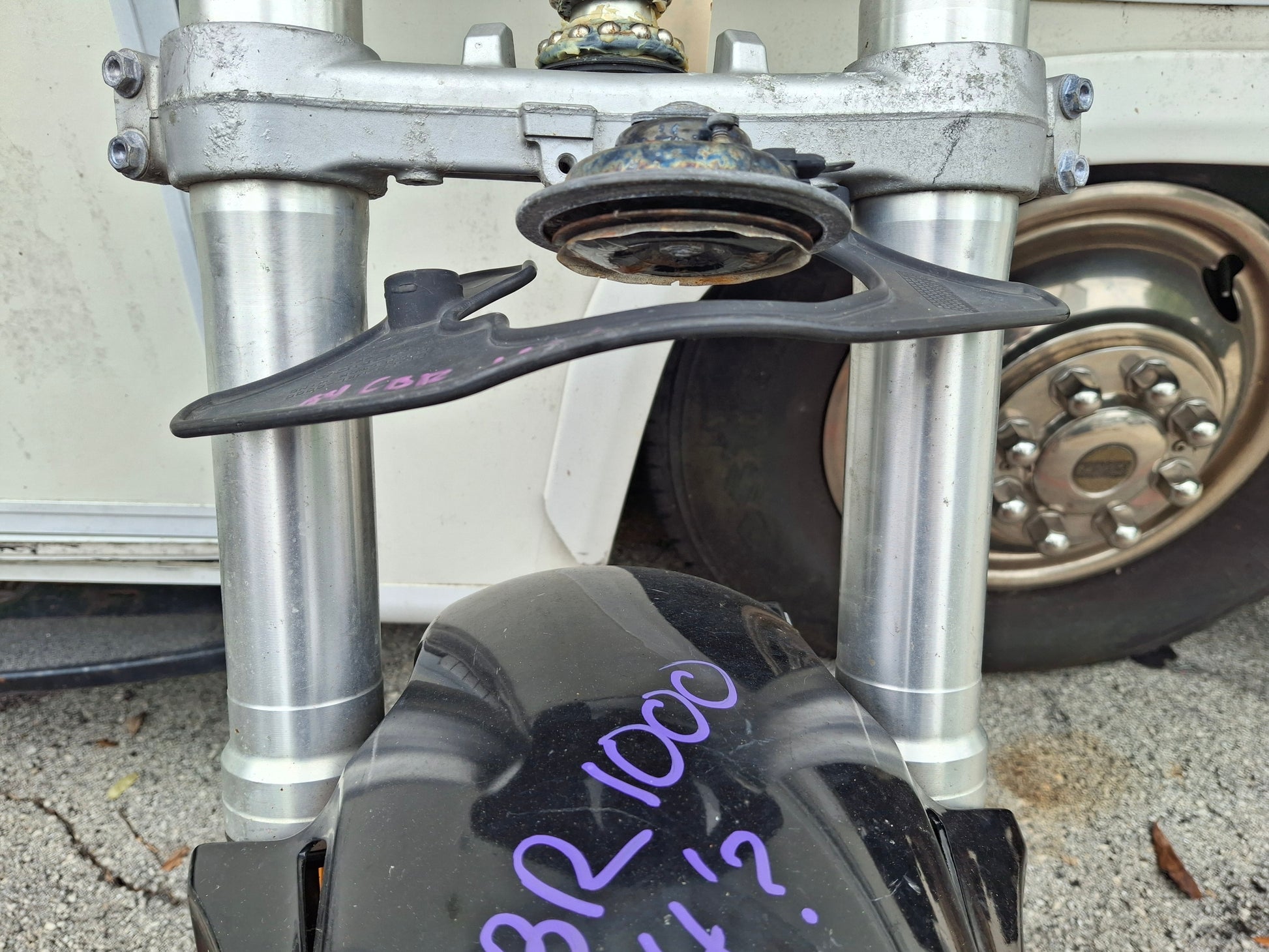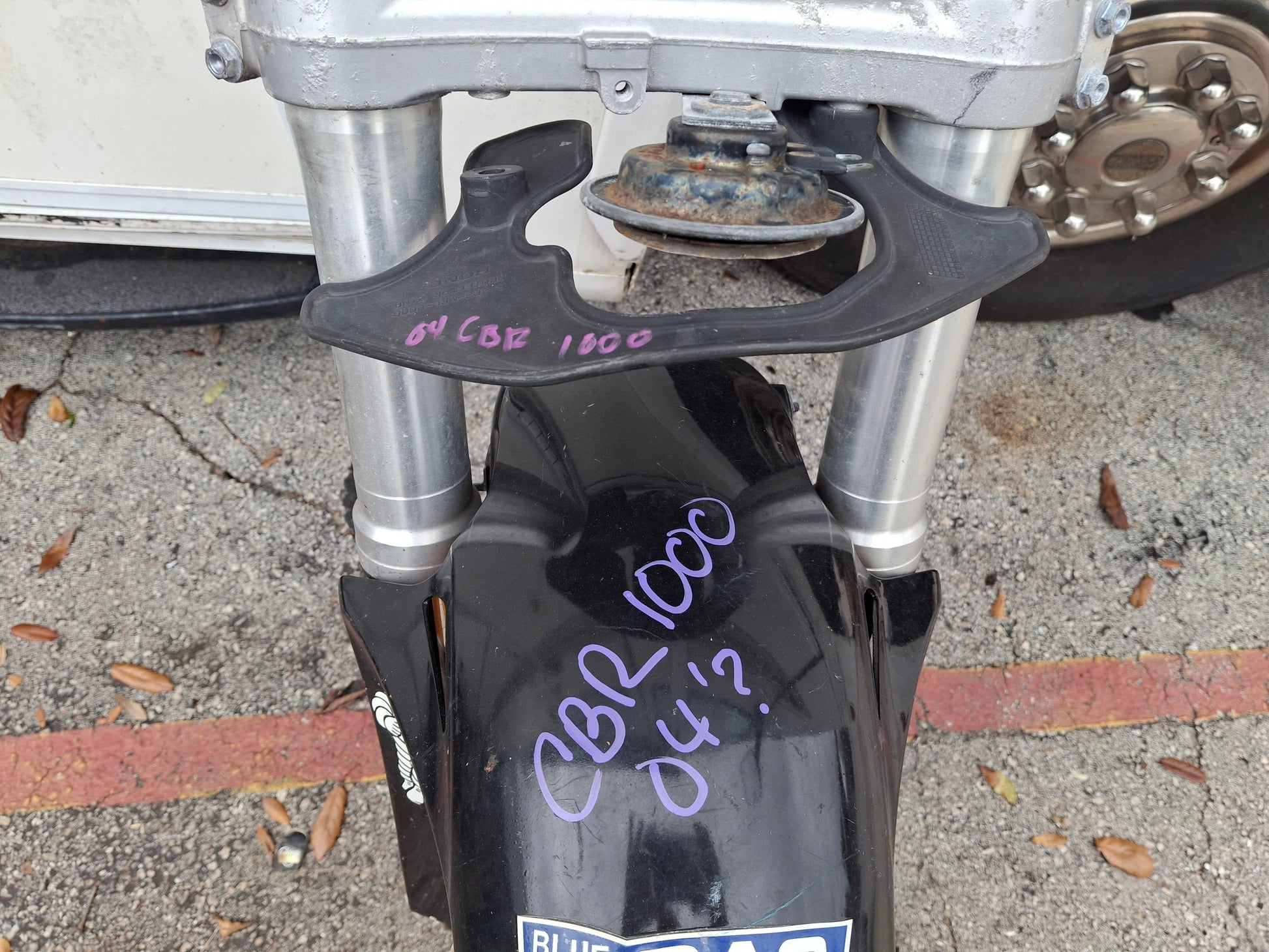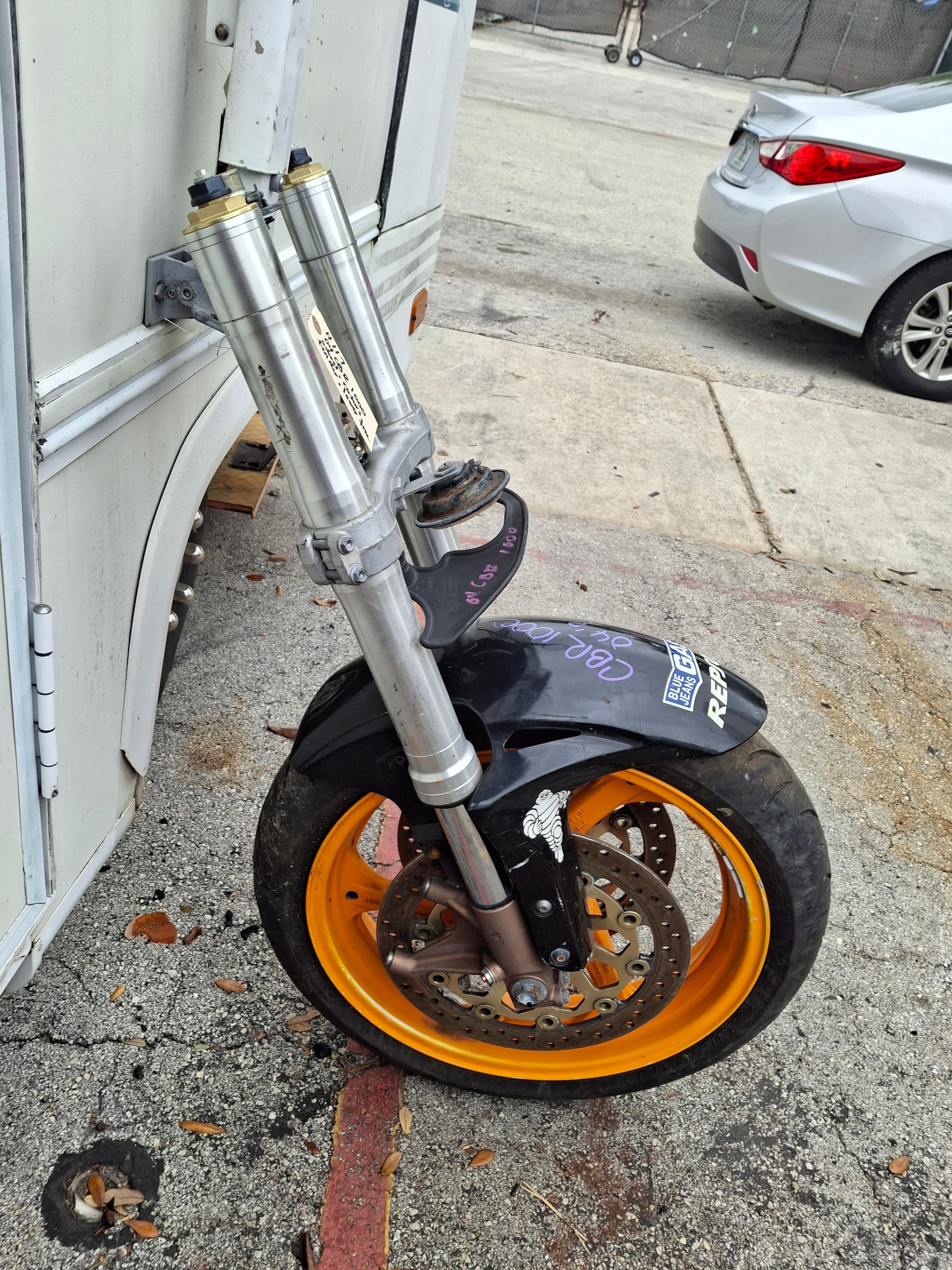 This listing is for the front end off of an 04-07 Honda CBR1000RR, off of 04 05. What you see in the pictures is what you get. Forks, Lower triple tree (we may have an upper if you need for an additional cost) , Front wheel with rotors, axle, fender and any other items pictures on the forks NOT including the front tire. The front tire WILL be removed prior to shipping to help with shipping cost. These items are used and will show signs of normal wear and tear (scratches, dings on rim etc, nothing that will effect performance). Please look closely at all pictures to get an idea of condition. We do not guarantee the fork seals to be good, they are not currently leaking but we do recommend changing them prior to use. These items my be shipped in multiple boxes for safety of the items. We are located in Florida, shipping to areas on the west coast as well as Alaska, Puerto Rico etc may be higher than quoted so please message us for accurate shipping prior to purchase.