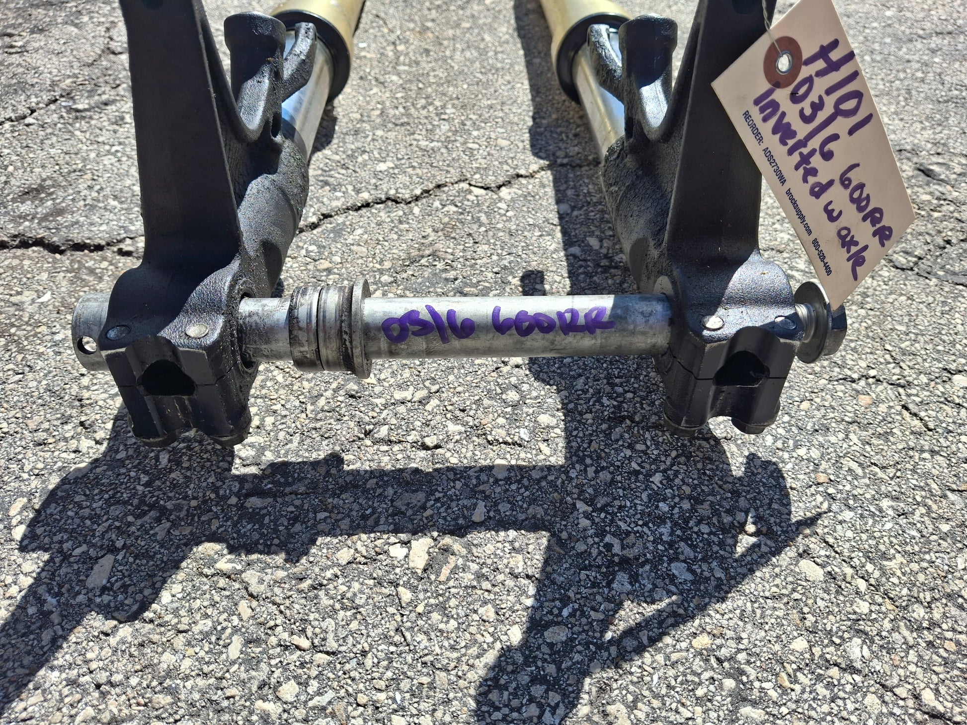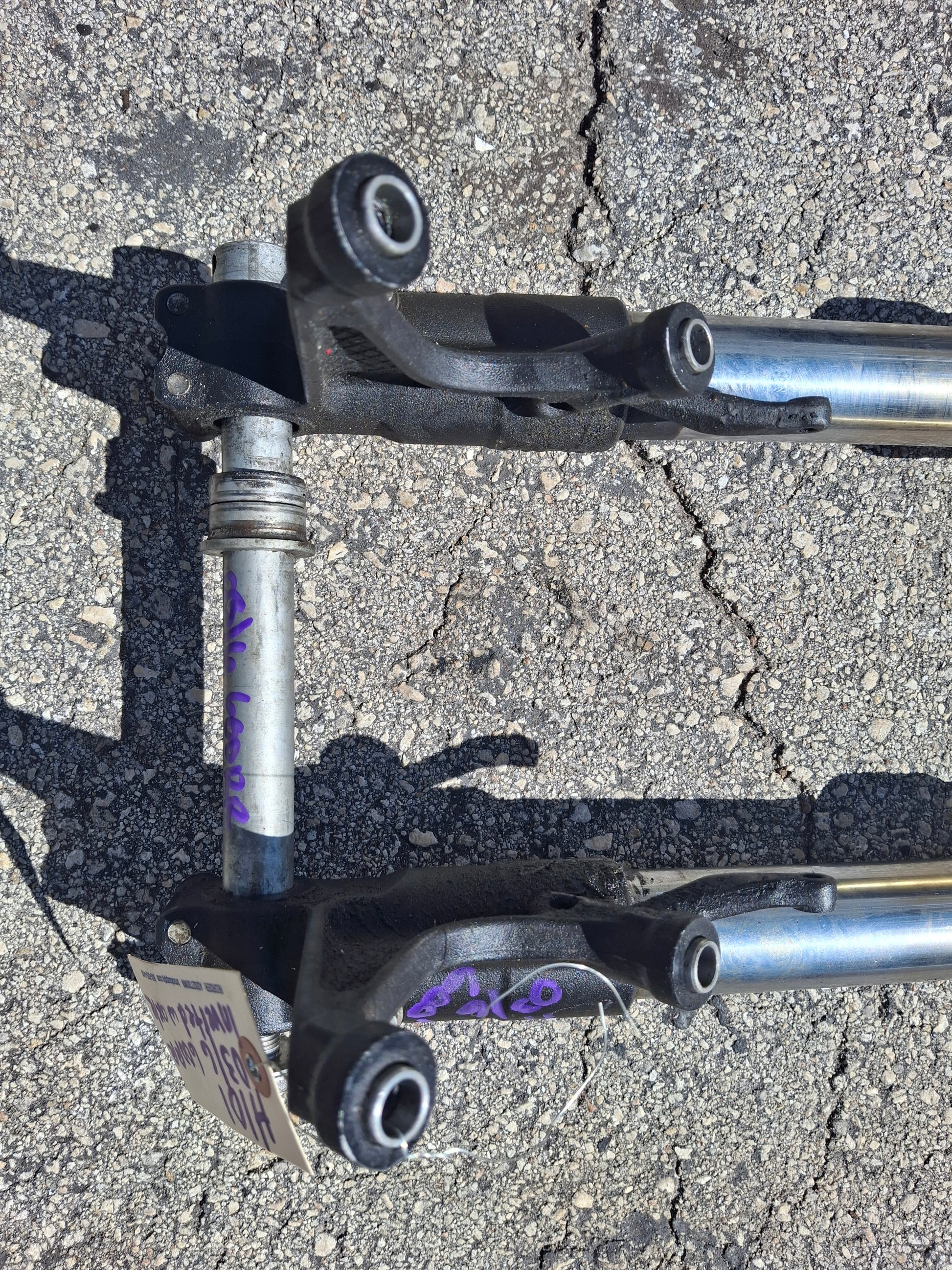This listing is for a set of front forks and an axle off of an 05 06 Honda CBR 600 RR. These forks are used and will show signs of normal wear and tear such as scratches. There are a couple of deeper scratches on these as shown in the pictures. Please look closely at all pictures for the best description. These are the MEE inverted forks for an 05 06 600RR. We do not guarantee fork seals to be good on any of our forks, these do not appear to be leaking but there are some cracks on the outer part that I can see, we do not guarantee them to be good. Forks are straight. Please message with any questions prior to purchase.