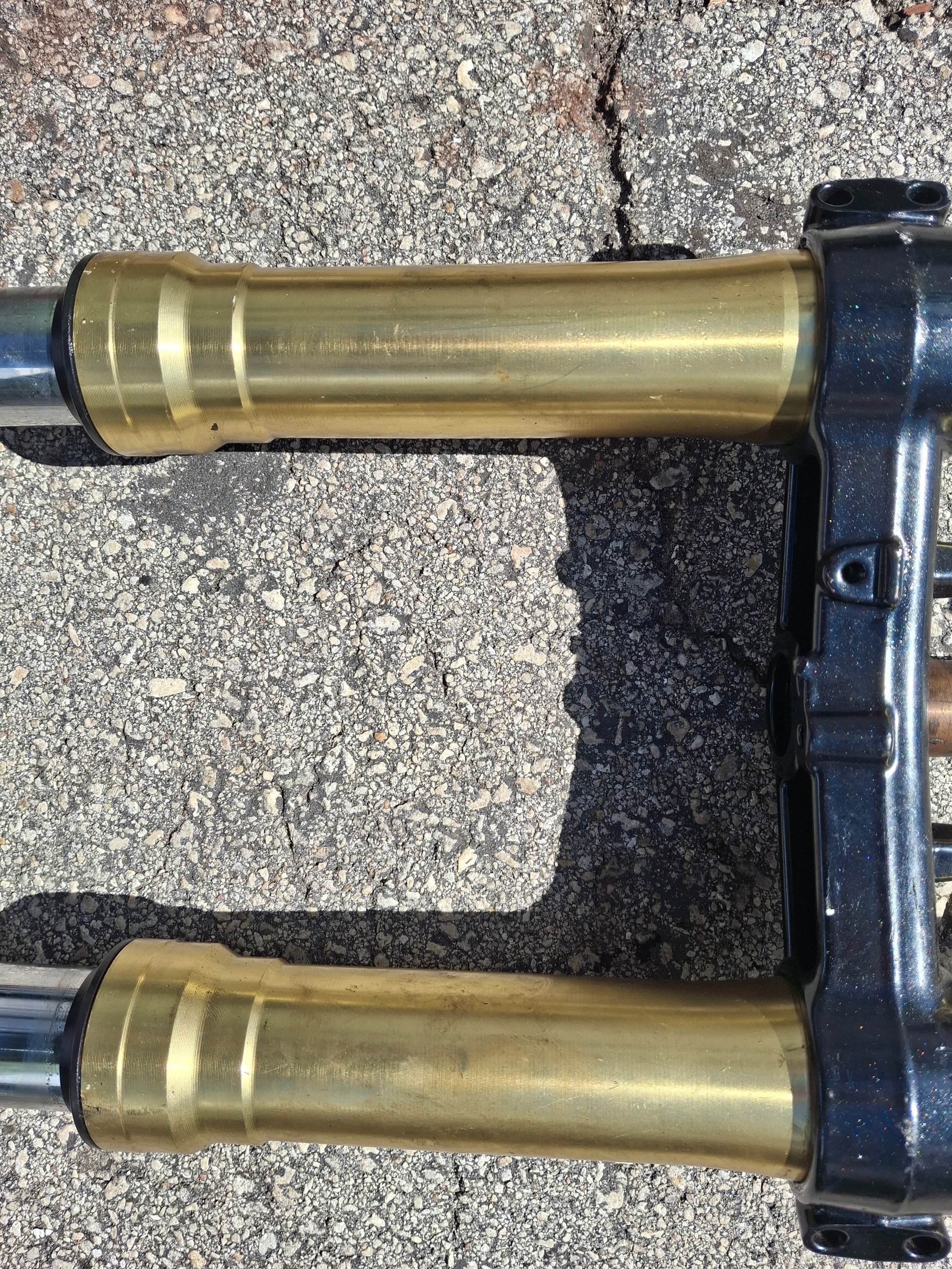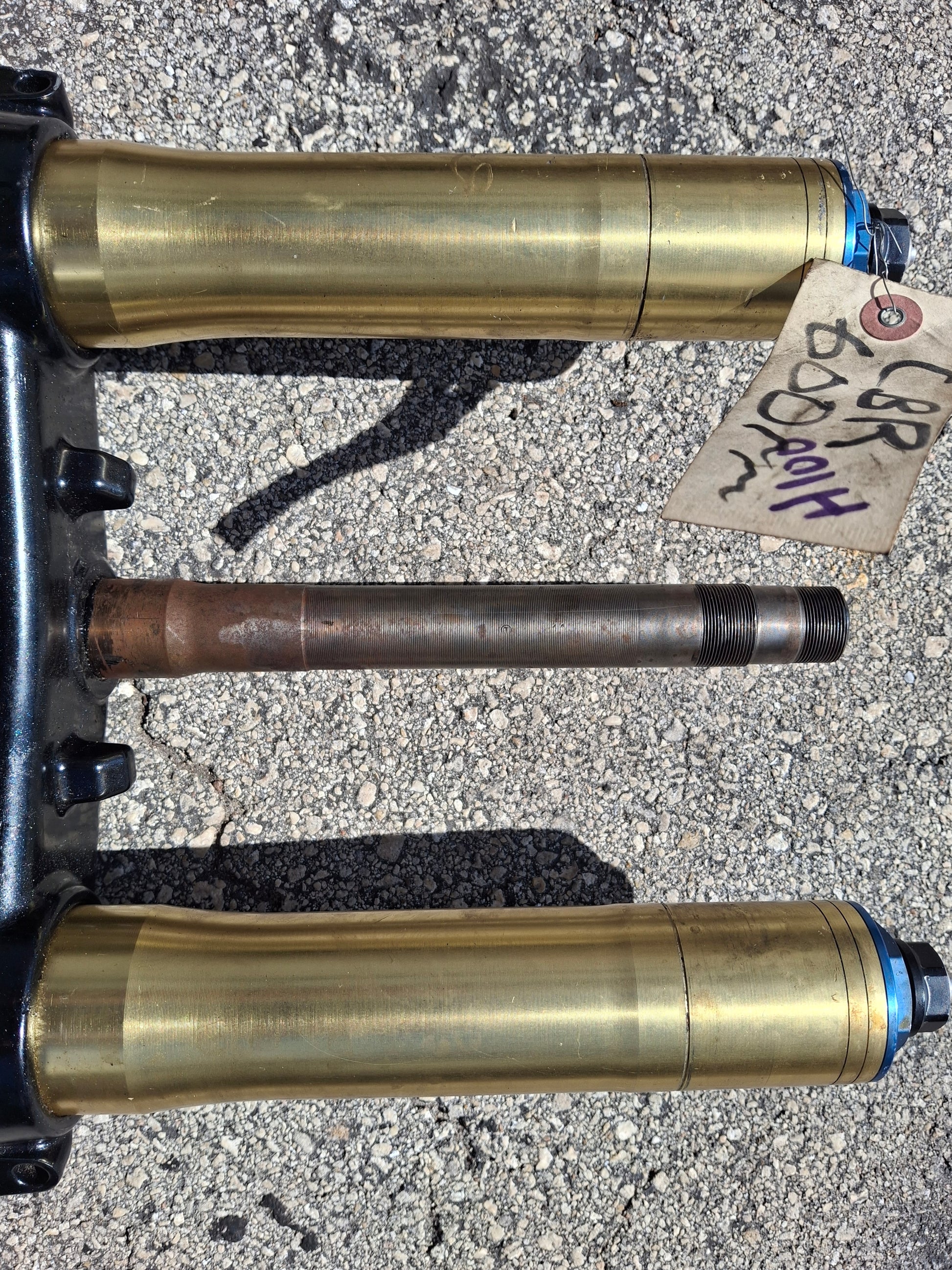 This listing is for a set of front forks and a lower triple tree off of an 05 06 Honda CBR 600 RR. These forks are used and will show signs of normal wear and tear such as scratches. Please look closely at all pictures for the best description. These are the MEE inverted forks for an 05 06 600RR. We do not guarantee fork seals to be good on any of our forks, these do not appear to be leaking but we do not guarantee them to be good. Forks are straight. Please message with any questions prior to purchase.