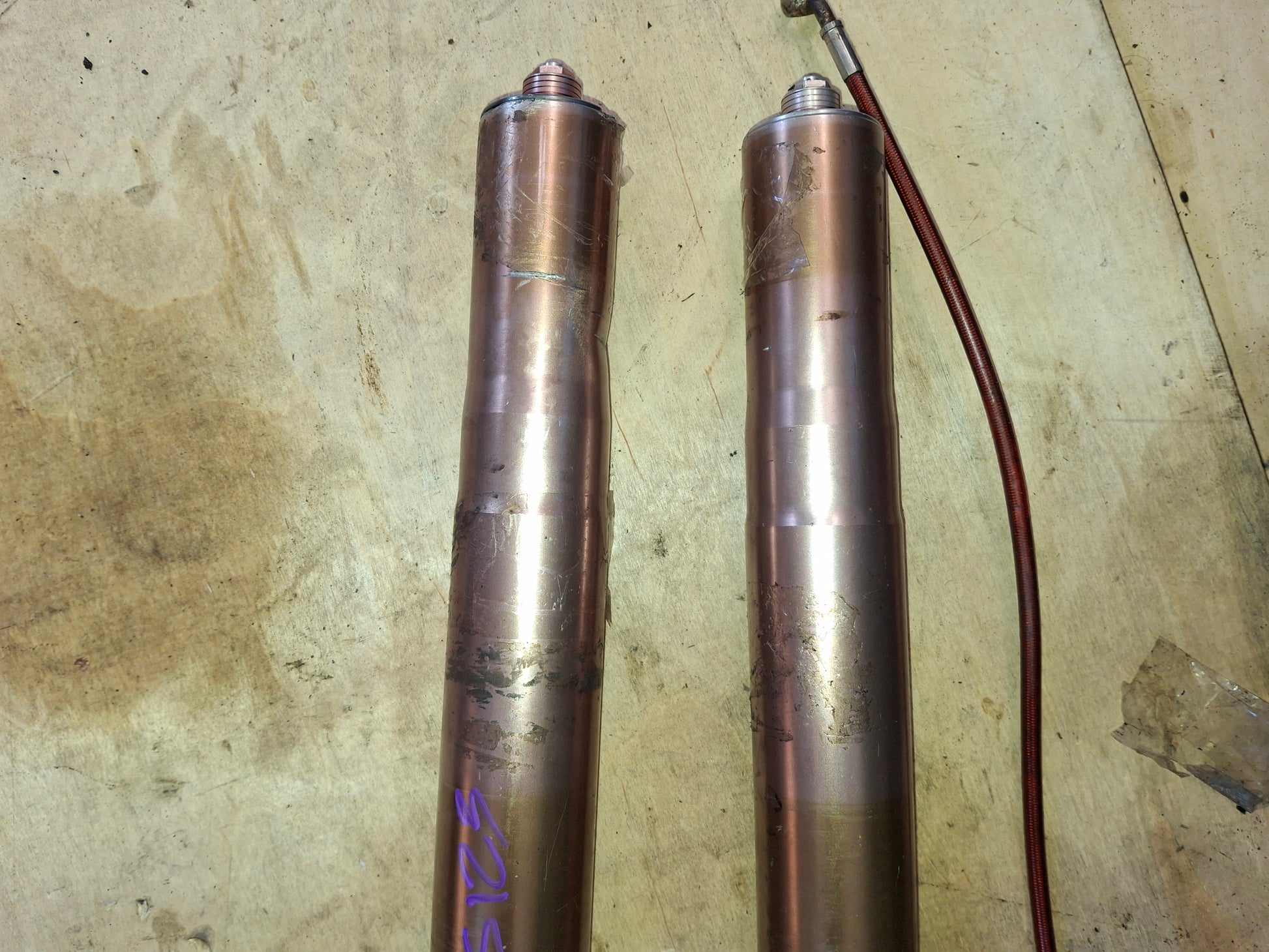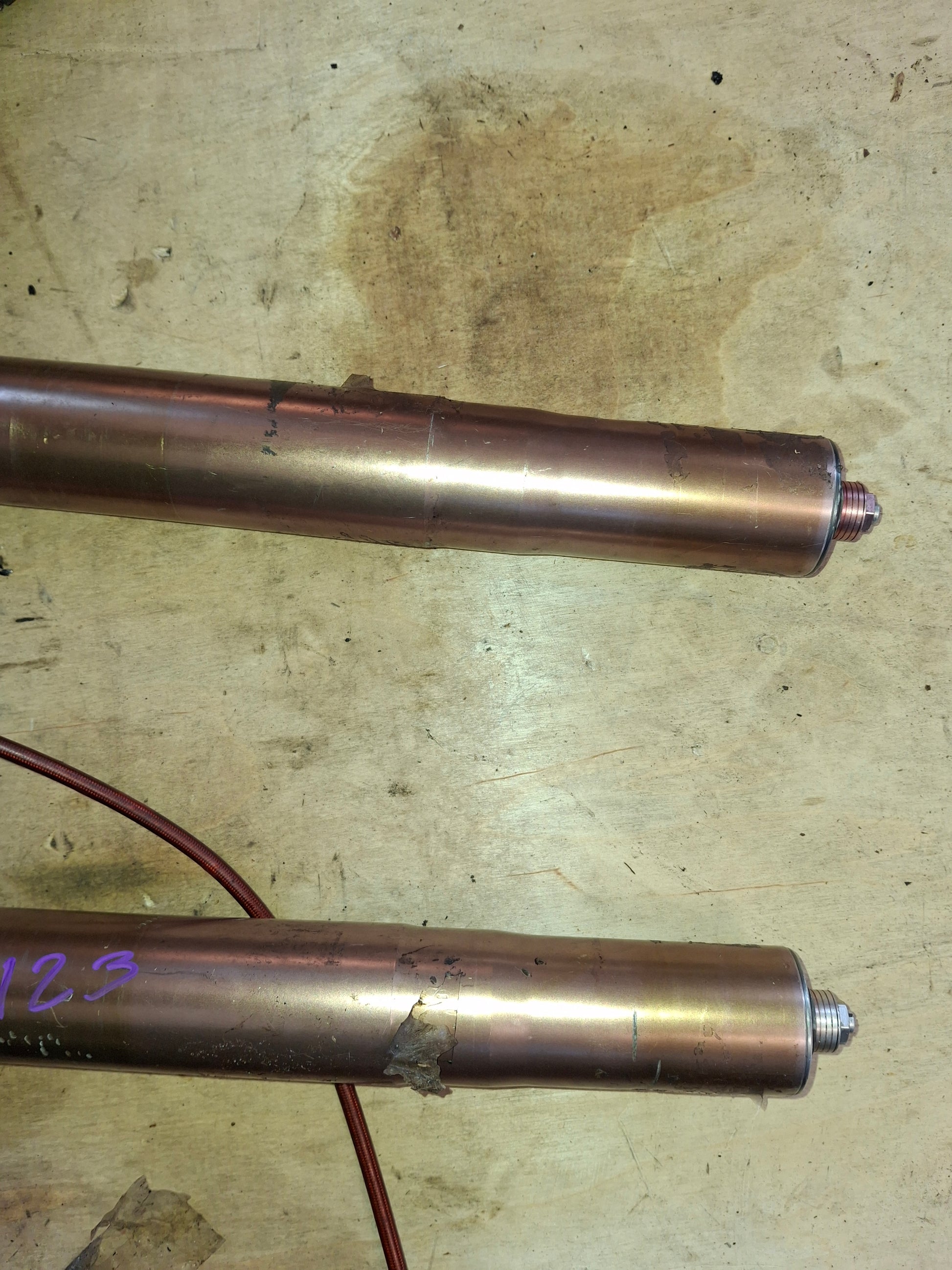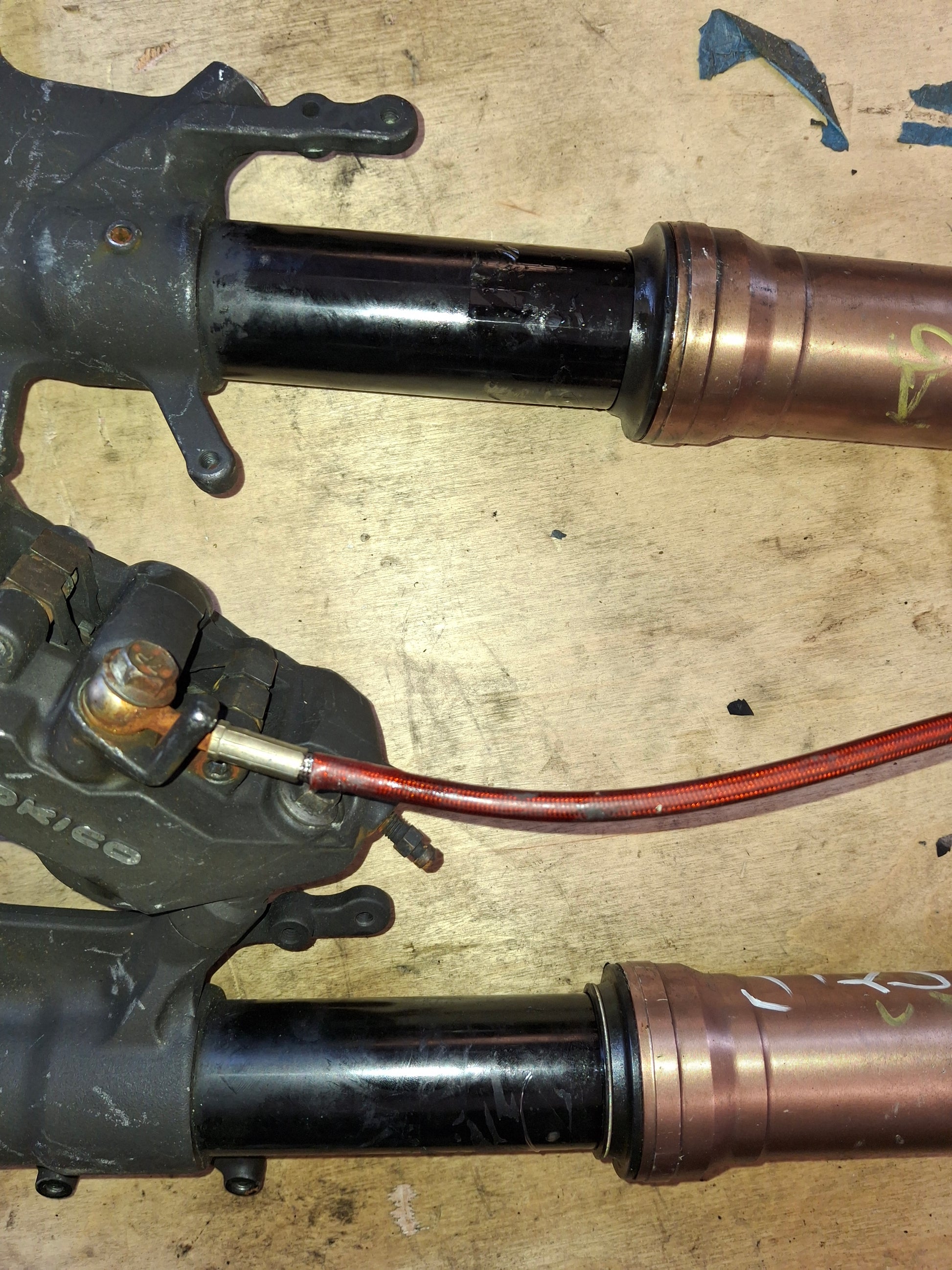 This listing is for the front forks and 1 caliper off of an 05-06 Suzuki GSXR 1000. These forks are in used condition. They do show signs of normal wear and tear and will need cleaning. We will clean them a little prior to shipping/ There will be scratches and other normal signs of wear on the items. The top of one of the forks does have some damage, we included a picture. The numbers on the foot of the forks are XC-111 R3 and XC-111 L3. The caliper and line shown in the pictures will be included. What you see is what you get. Seals do not seem to be leaking and look ok. We do not guarantee them to be good. Please look closely at all pictures and ask all questions prior to purchase. We do have a rolling chassis of this available as well as some other parts. if you do not see what you need listed please message us.