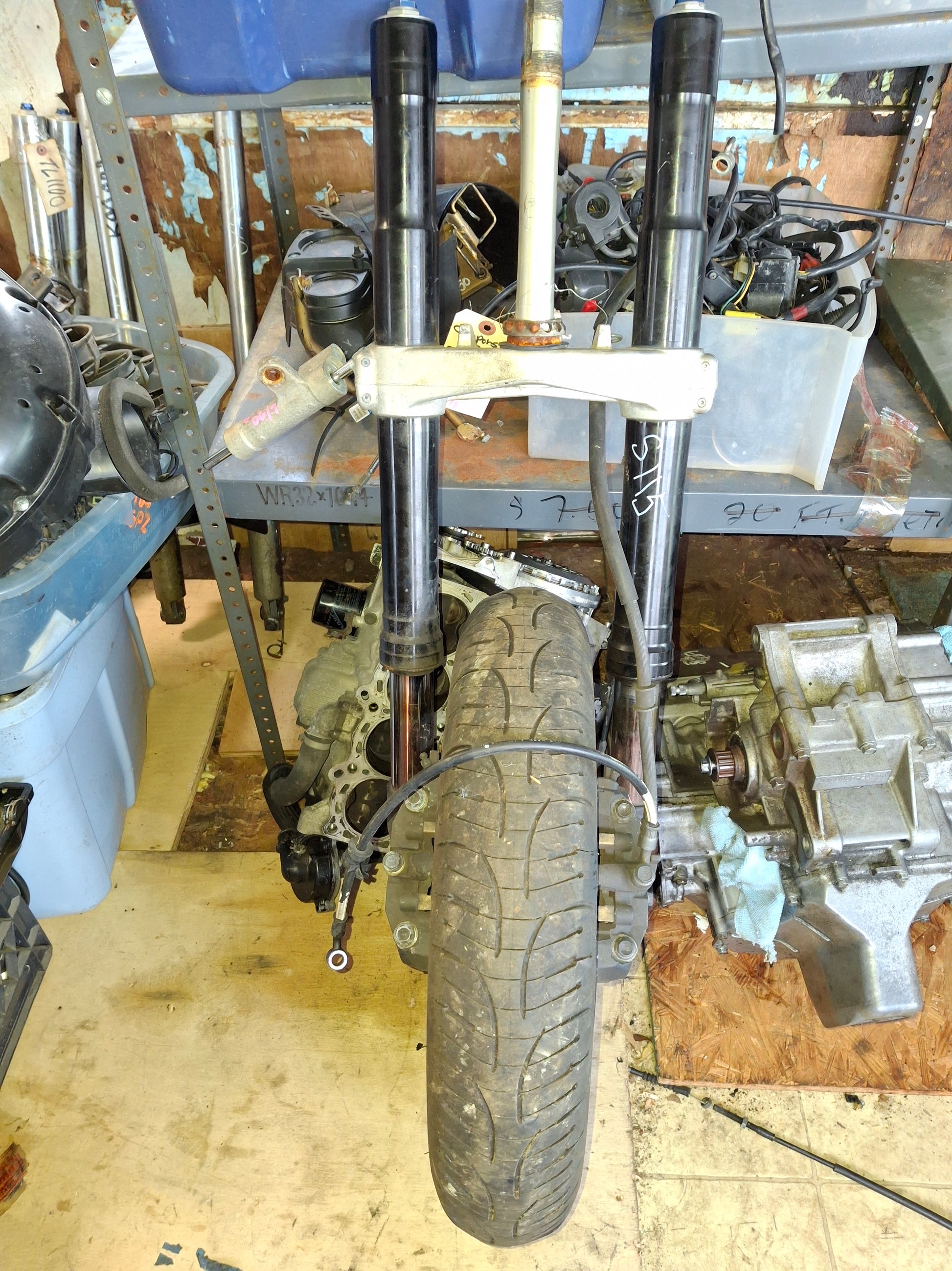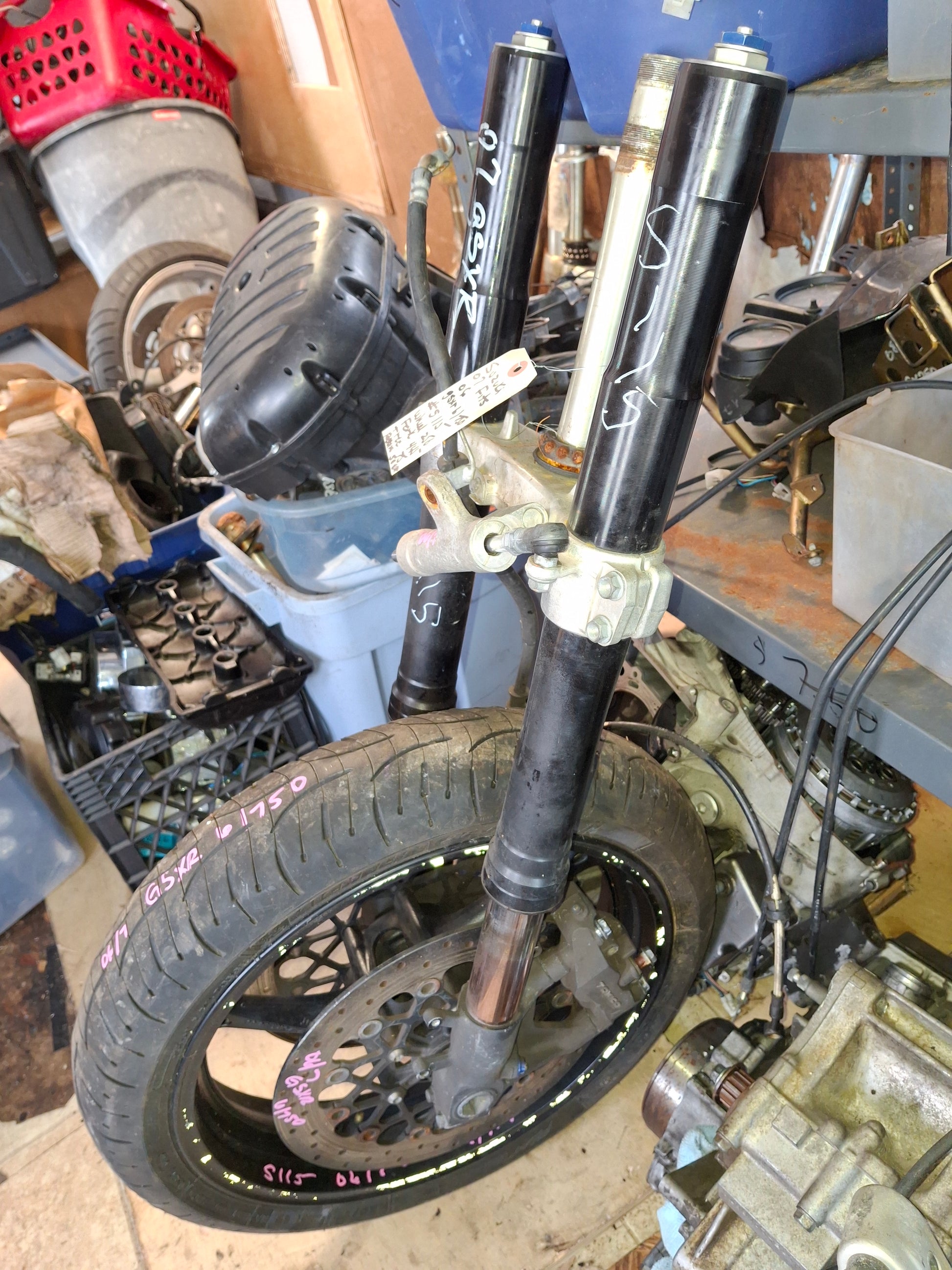 This listing is for the front end off of an 06 07 GSXR 600/750. This listing includes what you see in the listing: forks, lower triple tree, front wheel, calipers, rotors and steering damper. The items are all used and do show signs of wear and tear, please look closely at all pictures. There must have been a sticker that went around the wheel that was pulled off, you can see areas where the paint must have come off with the sticker. There is also rust on the rings around the lower triple tree and some of the bearings are missing. You could replace this piece with your old one if you still have it. We do not guarantee forks seals to be good. I do also have a set of forks available without everything (trees, damper etc) if you need just the forks, please message us. Please look closely at all pictures and ask all questions prior to purchase.