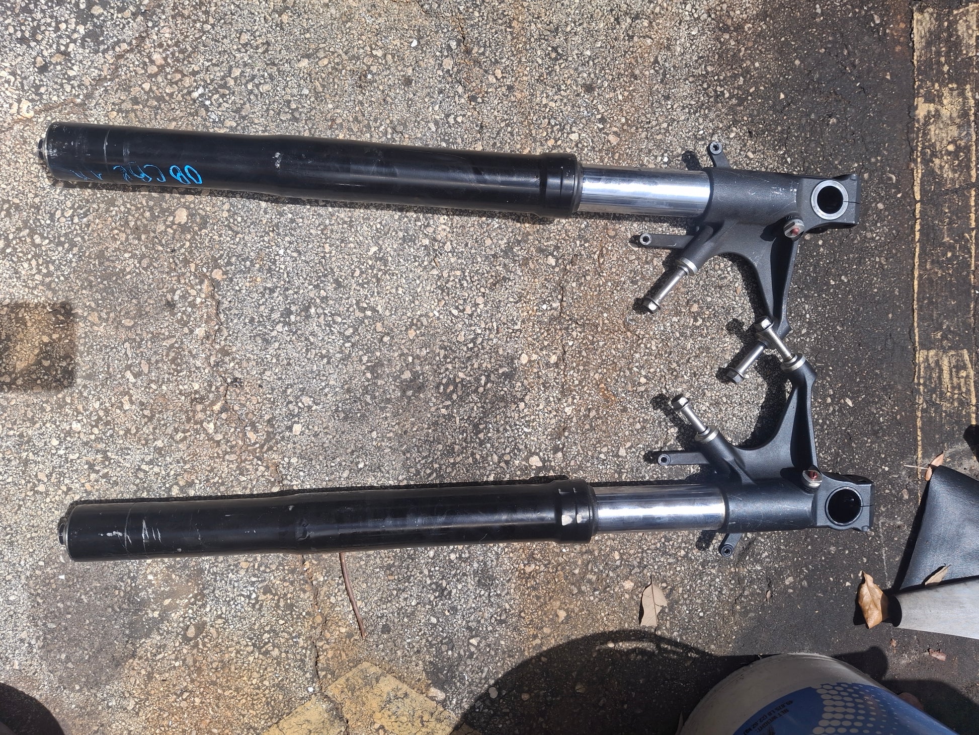 This listing is for a set of front forks off of an 08-11 Honda CBR 1000. The part number on the foot is MFL-00 (L&R). These forks are used and do show signs of normal wear. There are scratches on the forks as you can see in the pictures. The seals seem to be fine, but we do not guarantee the seals to be good and do recommend replacing them. They are not leaking. These forks are straight. We do have more parts for this motorcycle, if you do not see what you need listed please message us. We do have a roll off front end available as well if you need everything from the handle bars down.