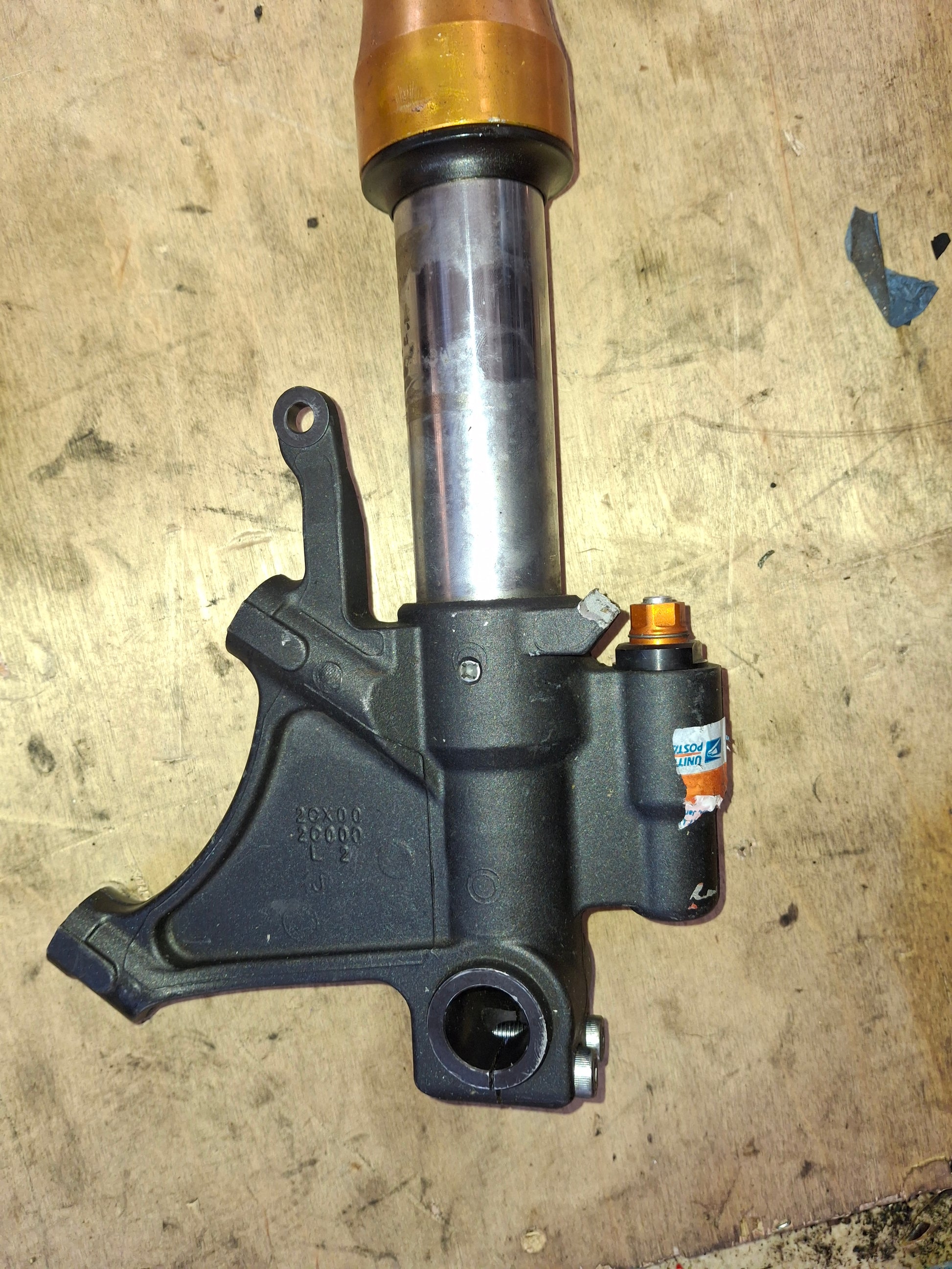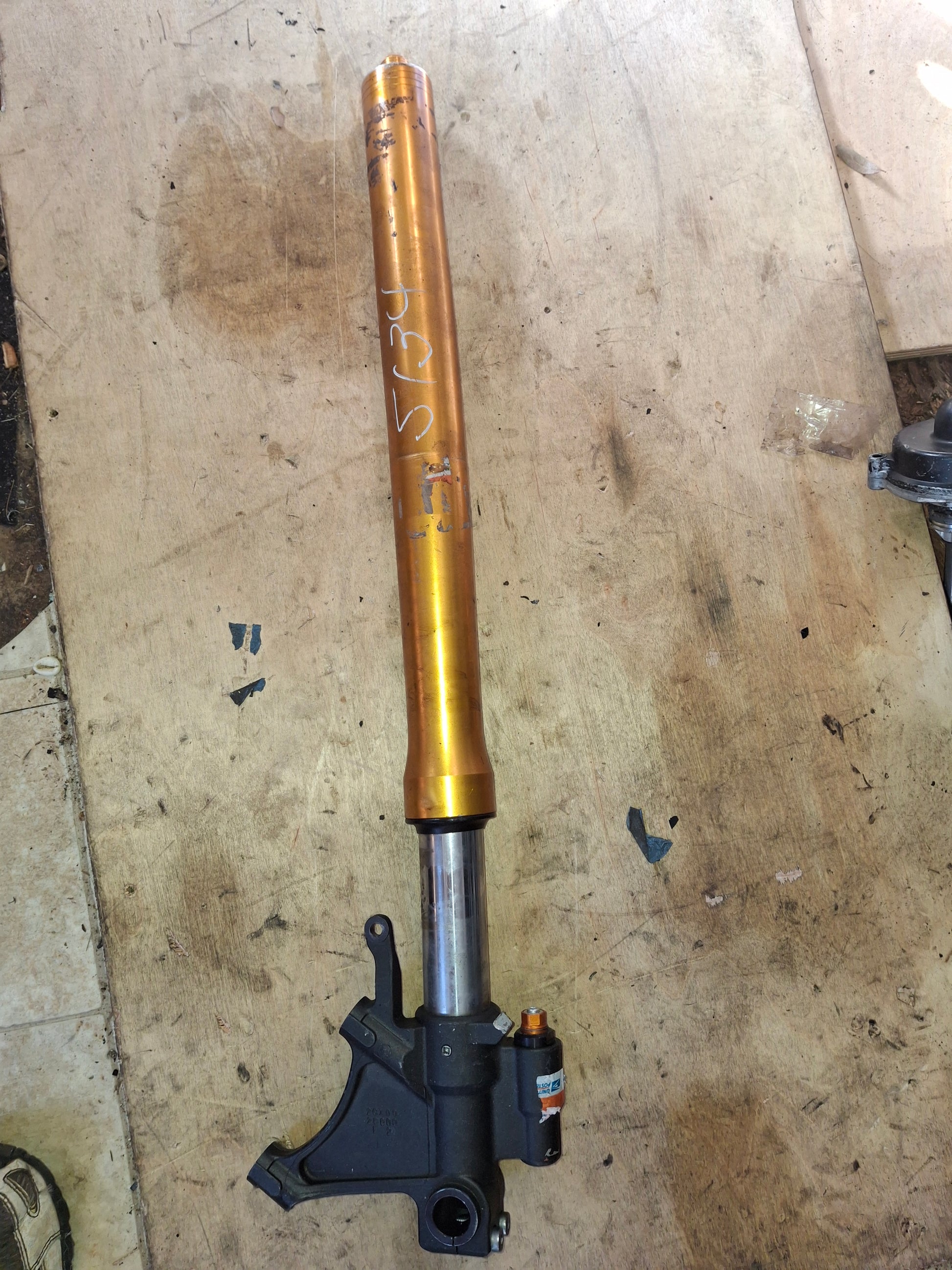 This listing is for a Left front fork that we believe is off of a Yamaha R6. This fork is bent and should be used for parts. Please look closely at all the pictures to see damage. The part numbers on the foot of the fork are 2C000 and 2CX00. I do believe it will work for 08-16 R6 but please look at your old fork to be sure prior to purchase. I have looked at tons of forks and none that I have come across have both of the above part numbers on them. If you have any more information on the fork please message us. This for is bent but will be good to use for parts. Please look closely at all pictures and ask all questions prior to purchase.