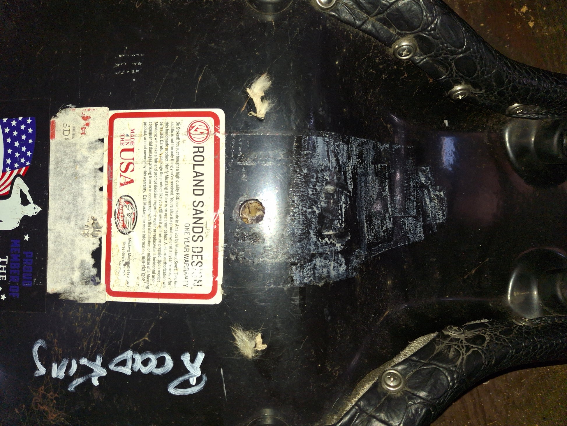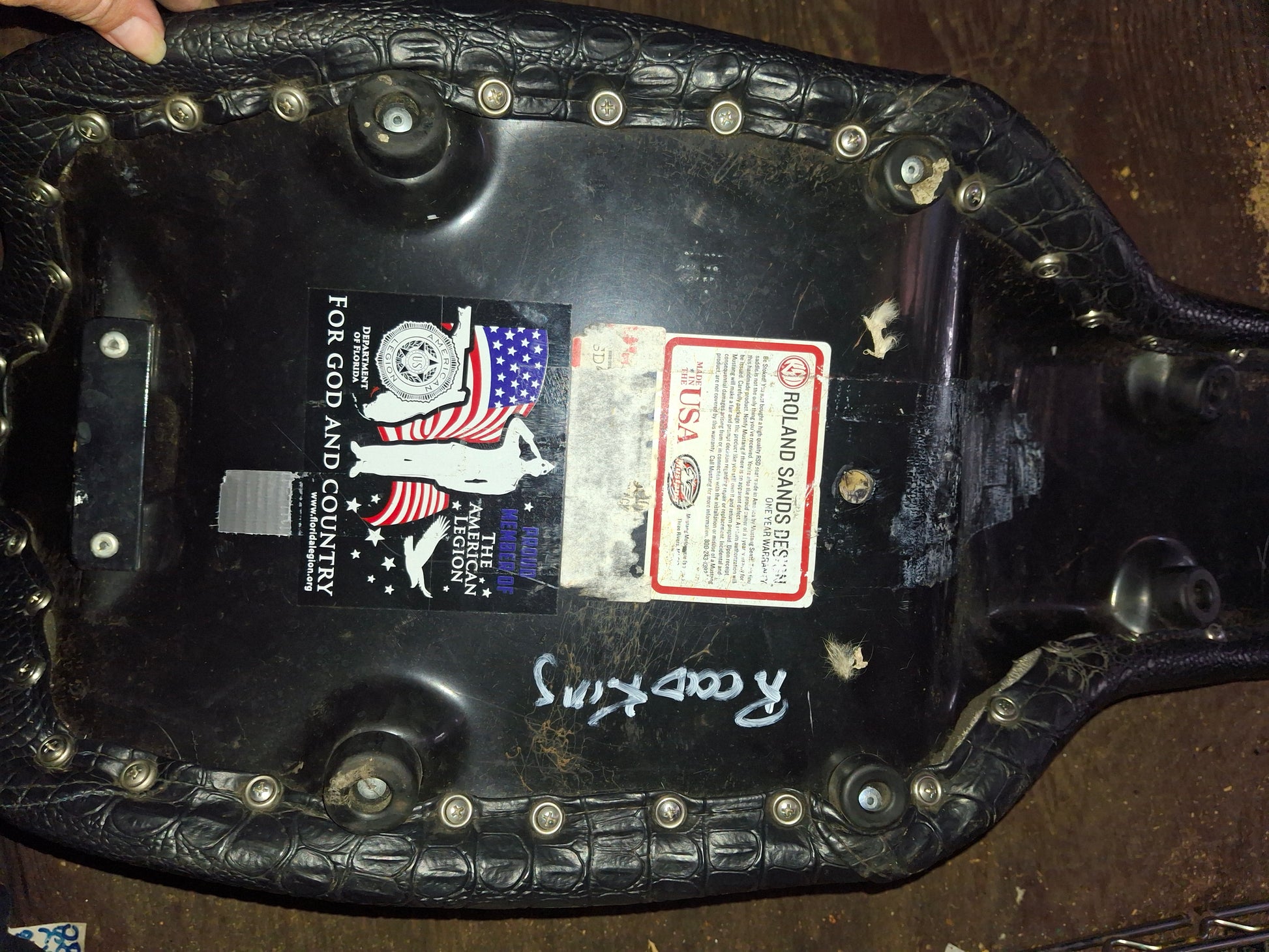 This listing is for a Roland Sands Design Mustang Seat. It is off of a Harley-Davidson Road King. This seat is in good used condition. There is some light rusting on the mount at the rear of the seat. Please look closely at all pictures and ask all questions prior to purchase.