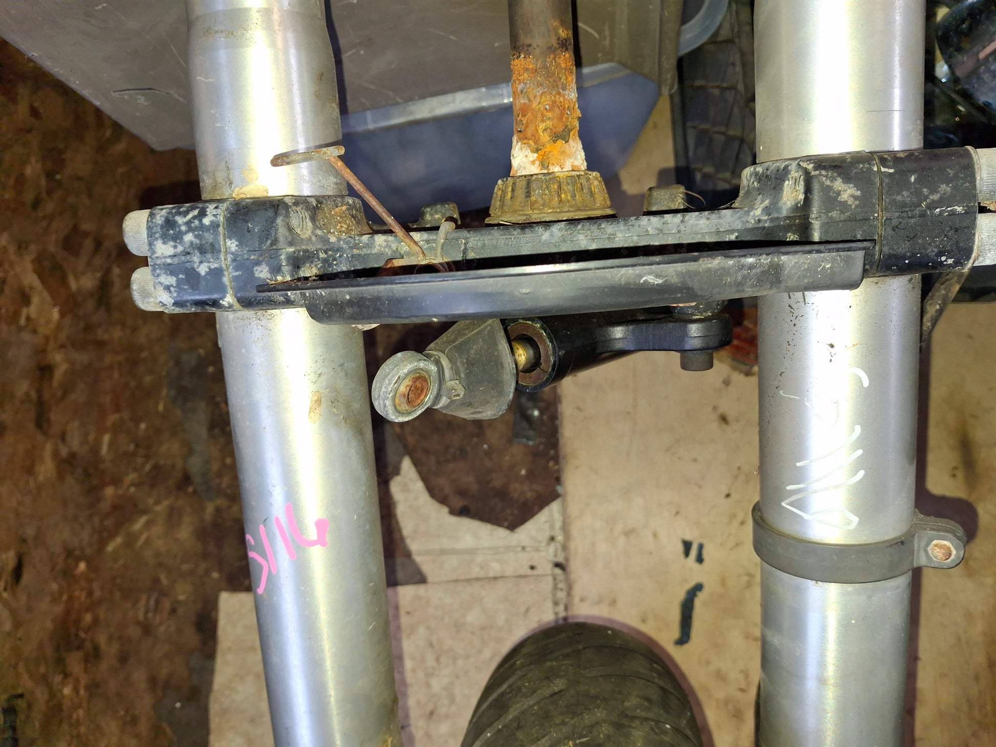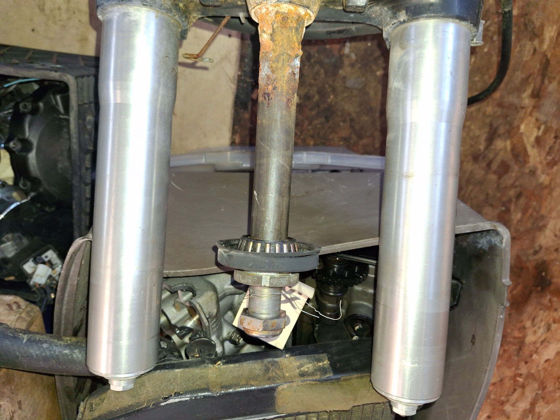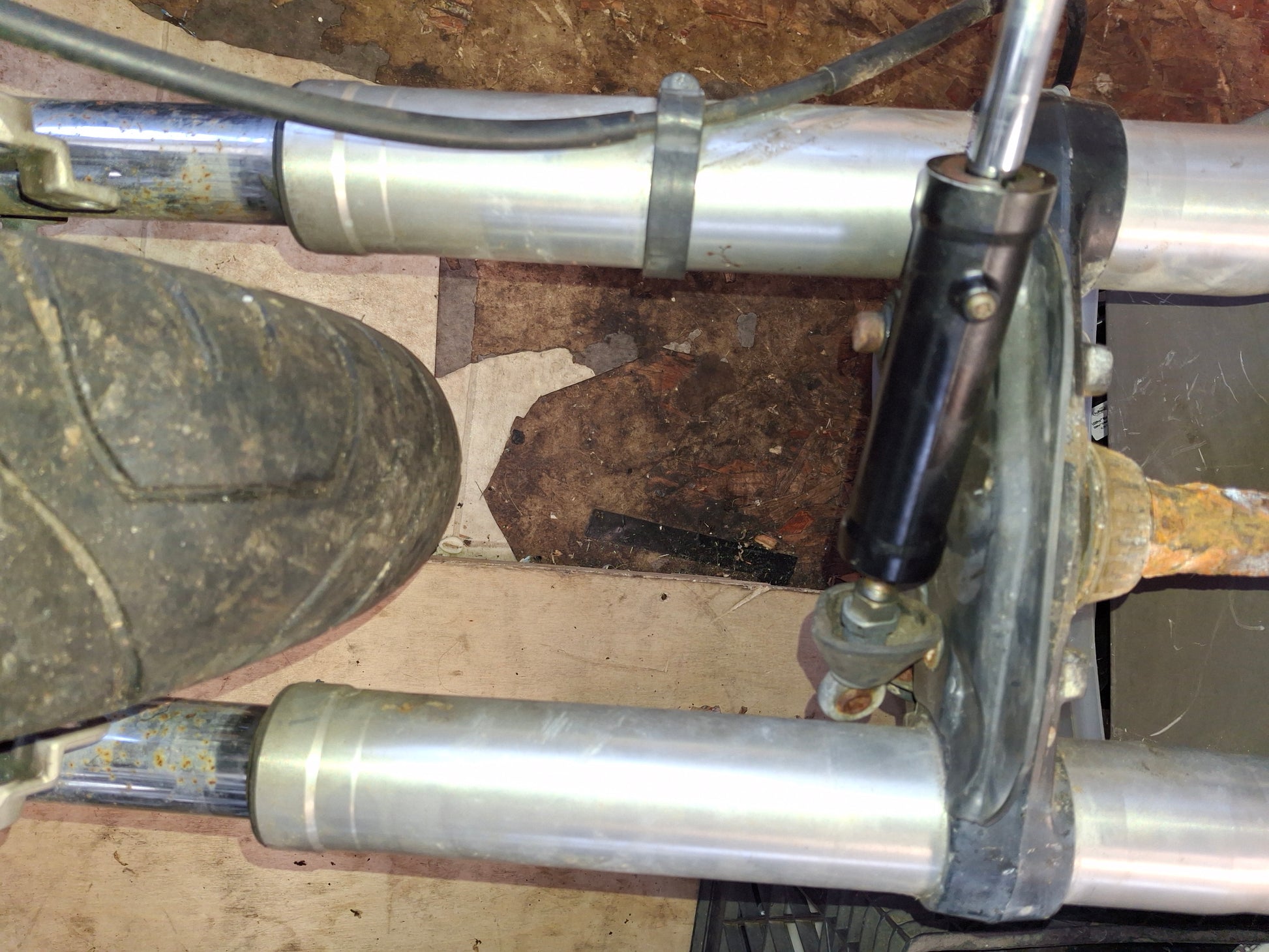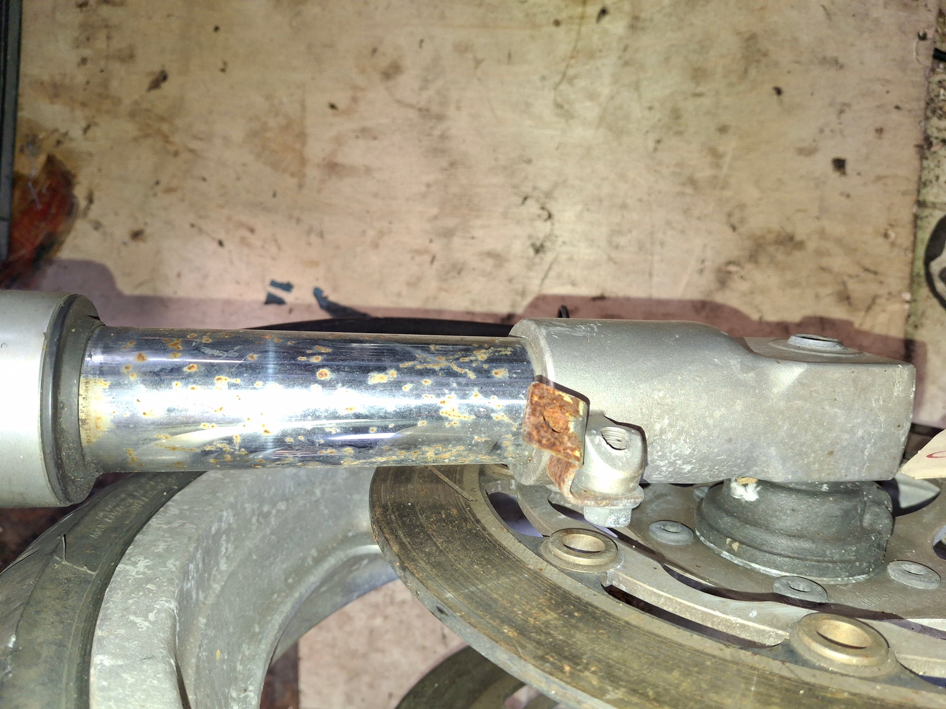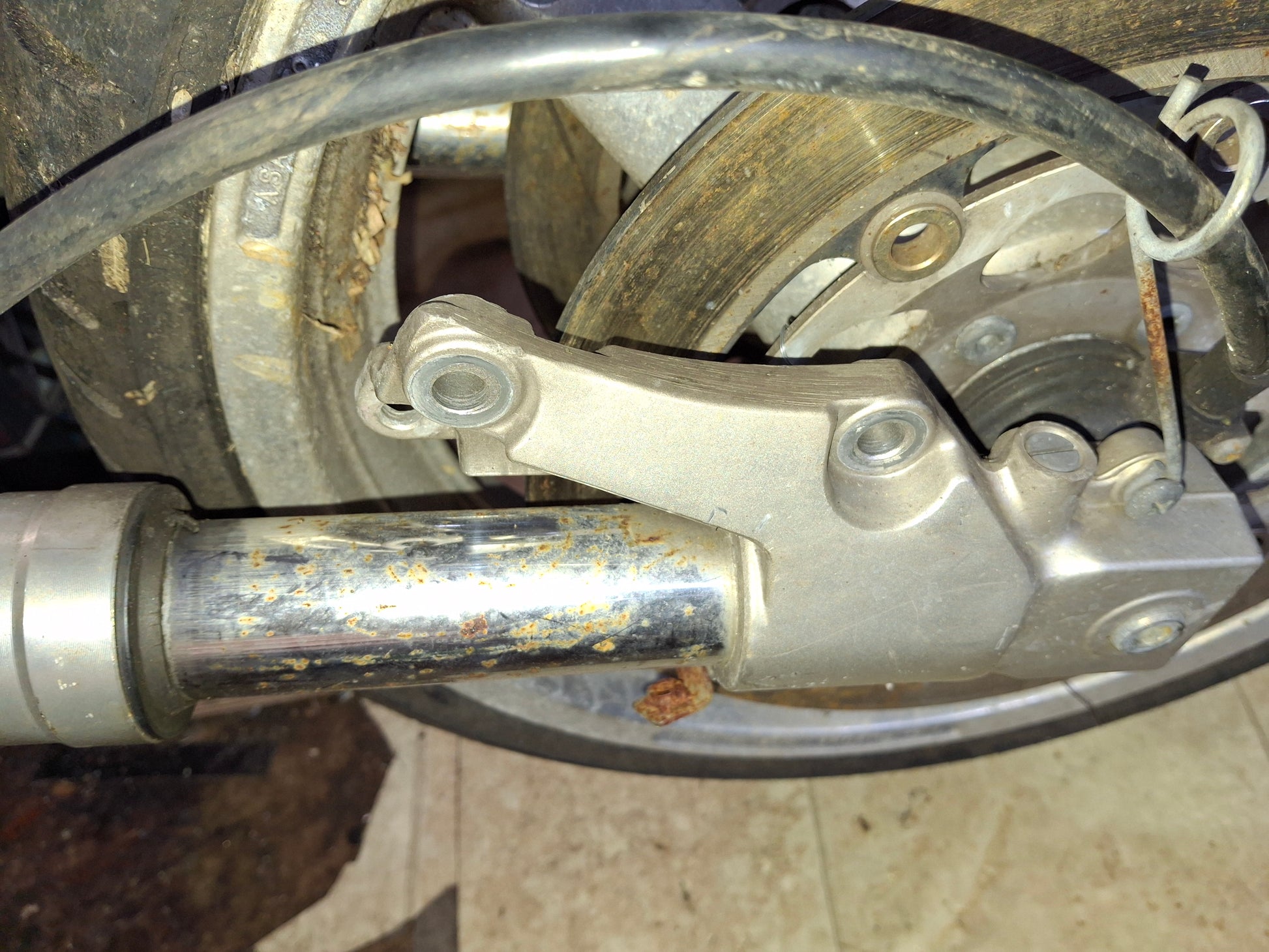 This listing is for the front forks, lower triple tree, front rim , rotos and steering damper off of a 93-98 Suzuki GSXR 1100. The front end is in good, straight, working condition. The tire on the rim is no good. There is some pitting on the lower legs of the forks, please see pictures. It looks like the numbers on the feet are 8(3?)592, but it is a little hard to see with the wheel in the way. Please look closely at all pictures and ask all questions prior to purchase. We do not guarantee fork seals to be good. This item is used so will not be perfect.