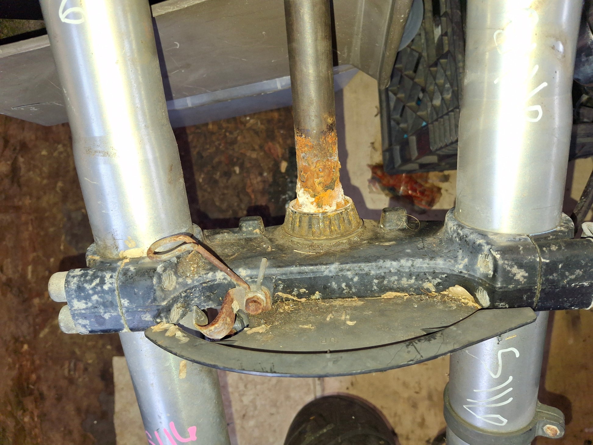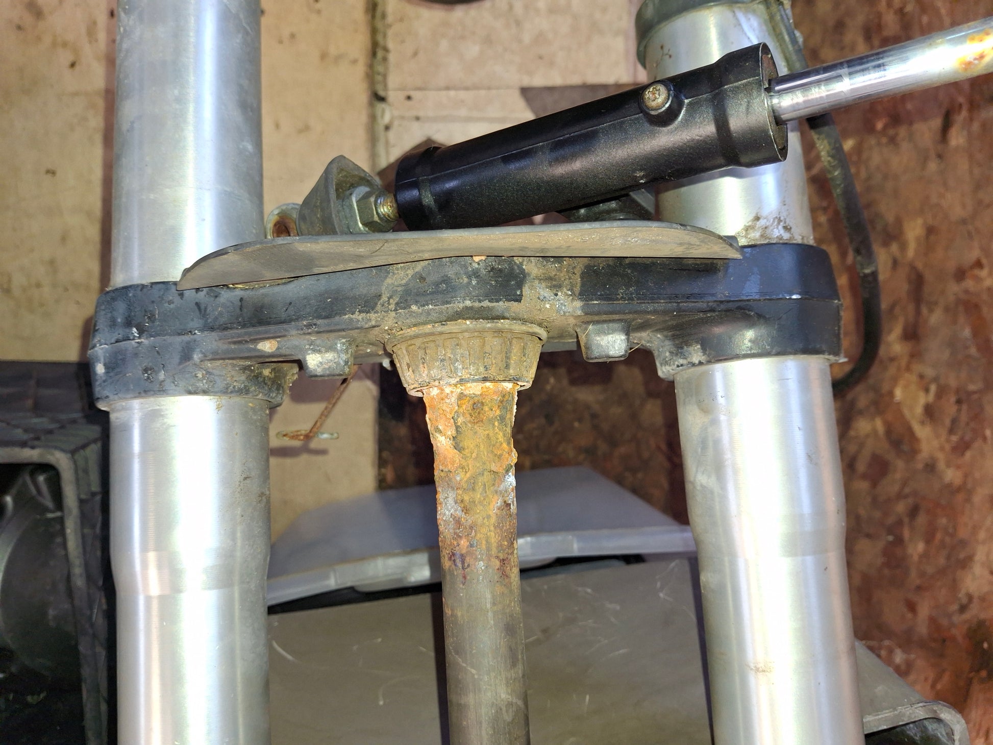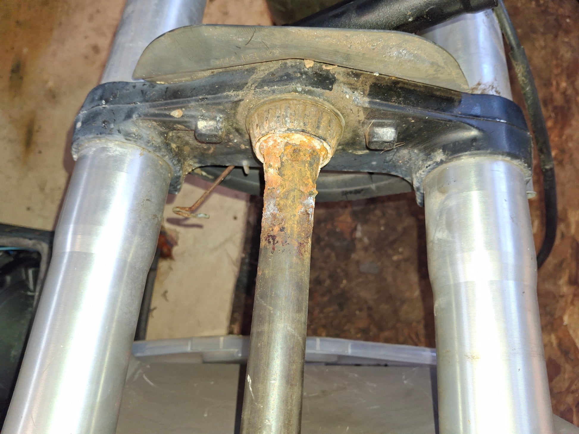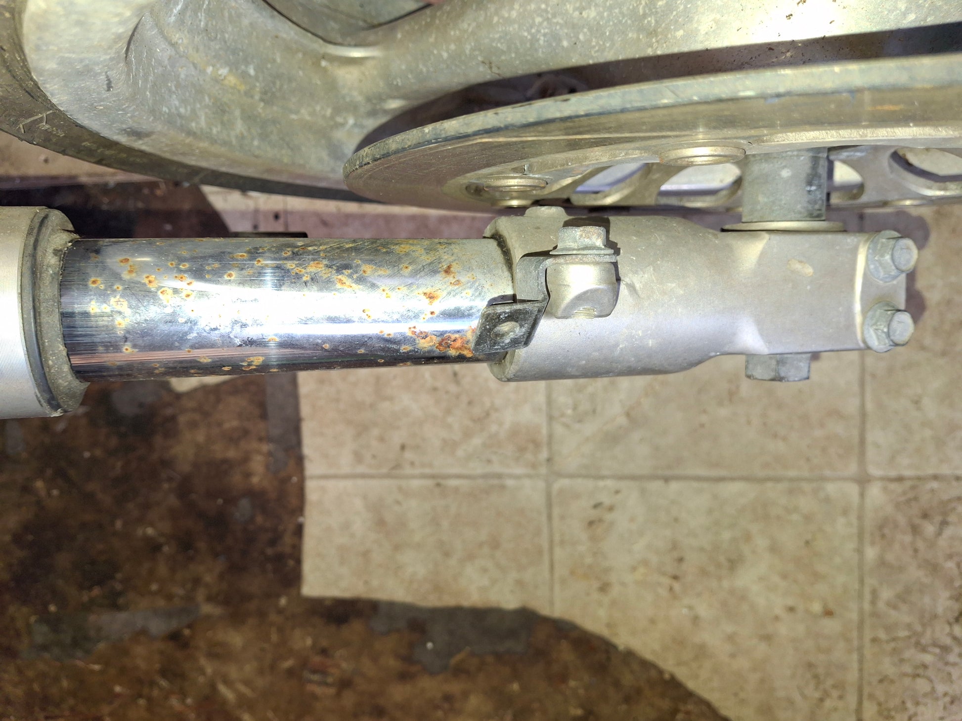 This listing is for the front forks, lower triple tree, front rim , rotos and steering damper off of a 93-98 Suzuki GSXR 1100. The front end is in good, straight, working condition. The tire on the rim is no good. There is some pitting on the lower legs of the forks, please see pictures. It looks like the numbers on the feet are 8(3?)592, but it is a little hard to see with the wheel in the way. Please look closely at all pictures and ask all questions prior to purchase. We do not guarantee fork seals to be good. This item is used so will not be perfect.