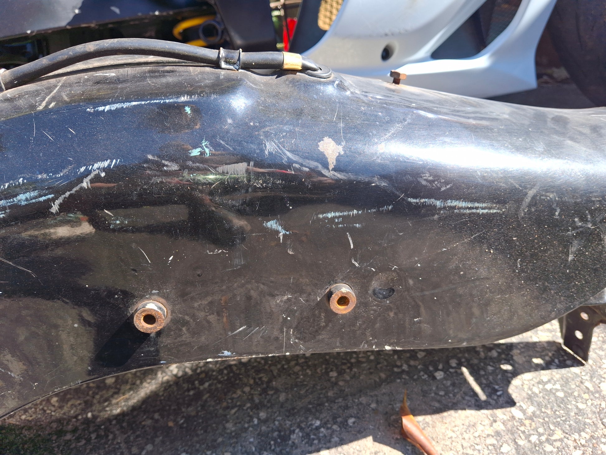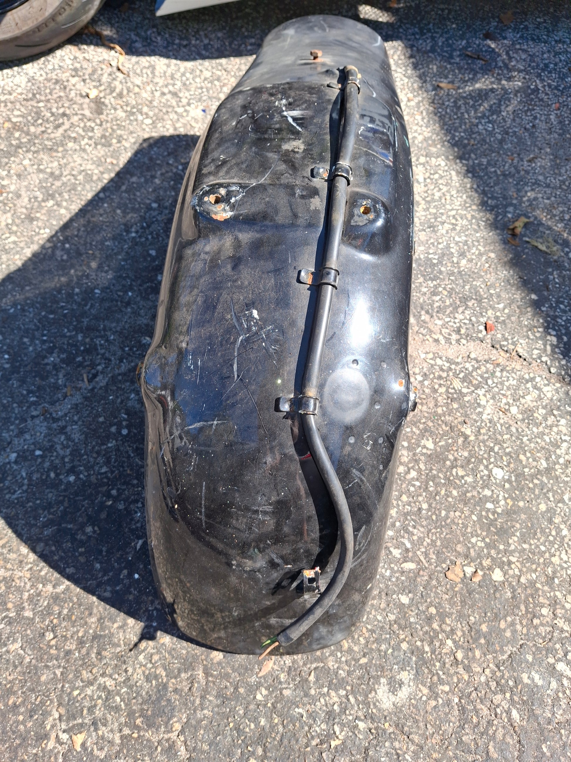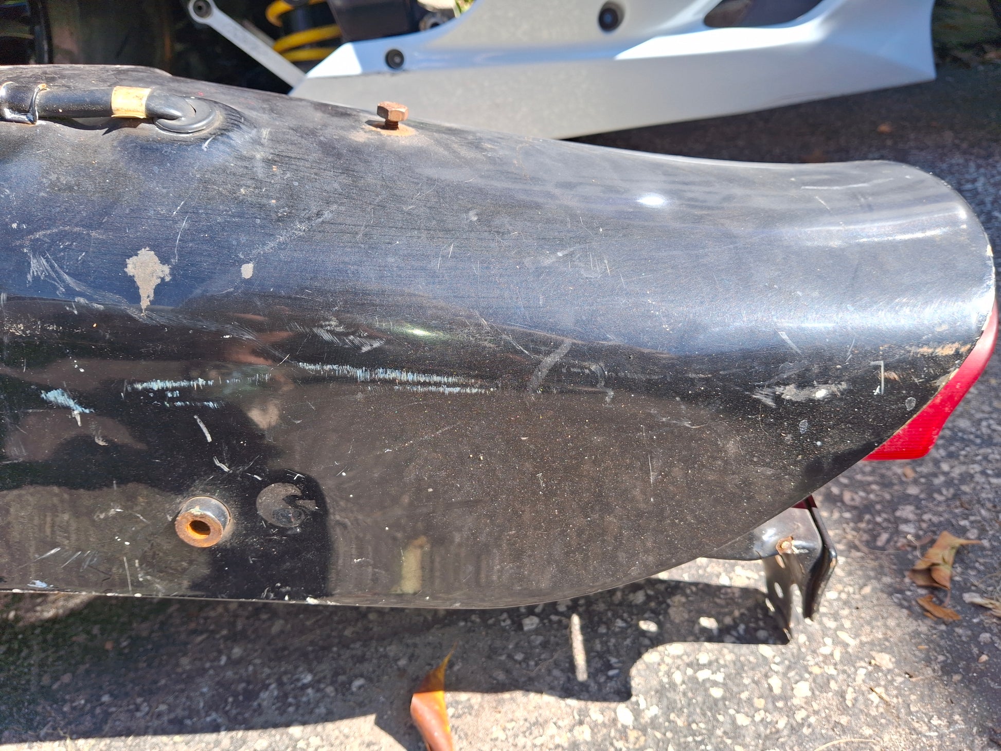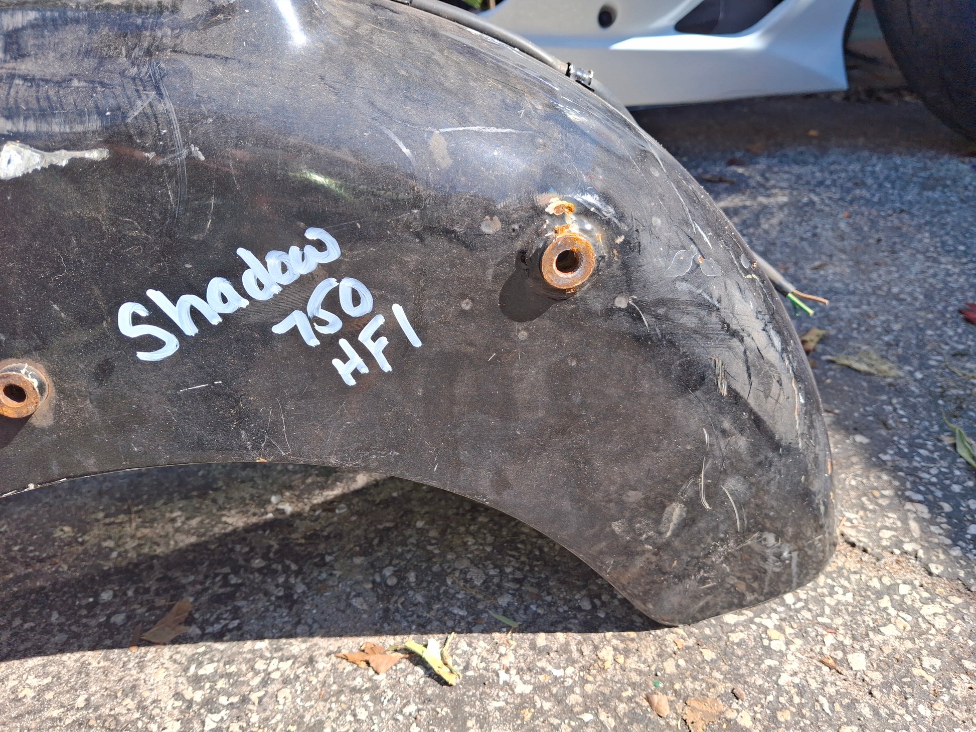 This listing is for the rear fender, tail light and tag bracket off of what I believe is a 96 Honda Shadow 1100. It is labeled as 750 but I do not believe that is correct. please compare to your old fender prior to purchase. As you can see there are scratches on the item. These scratches are due to normal wear and tear as well as being moved around our shop. The plug for the tail light was also cut as shown in pictures. What you see in the pictures is what you get. Please look closely at all pictures and ask questions prior to purchase. We do have other parts available for this bike, if you do not see what you need listed please message us. This item is large, if you are on the West Coast shipping may be higher, we are located in Florida.