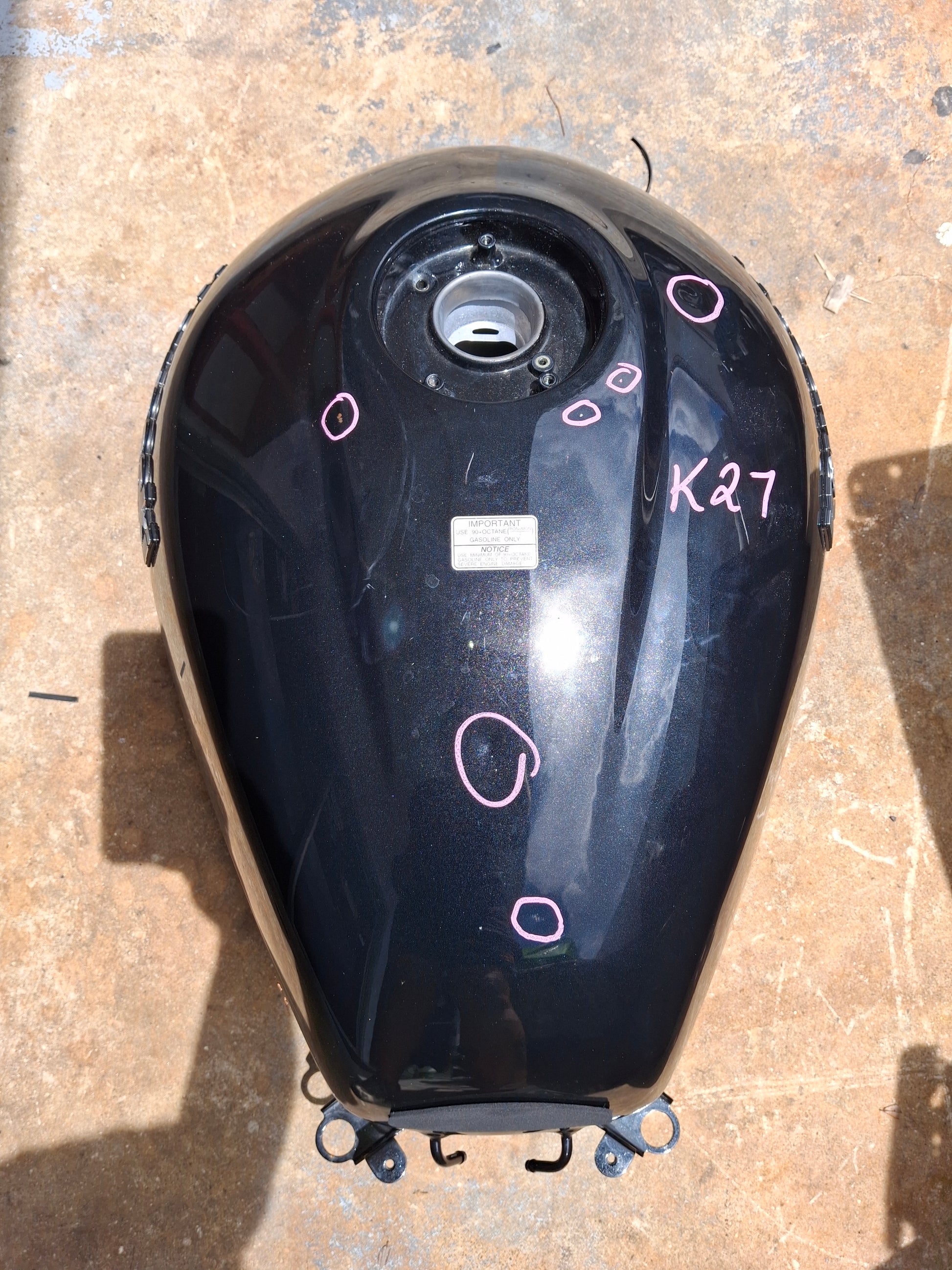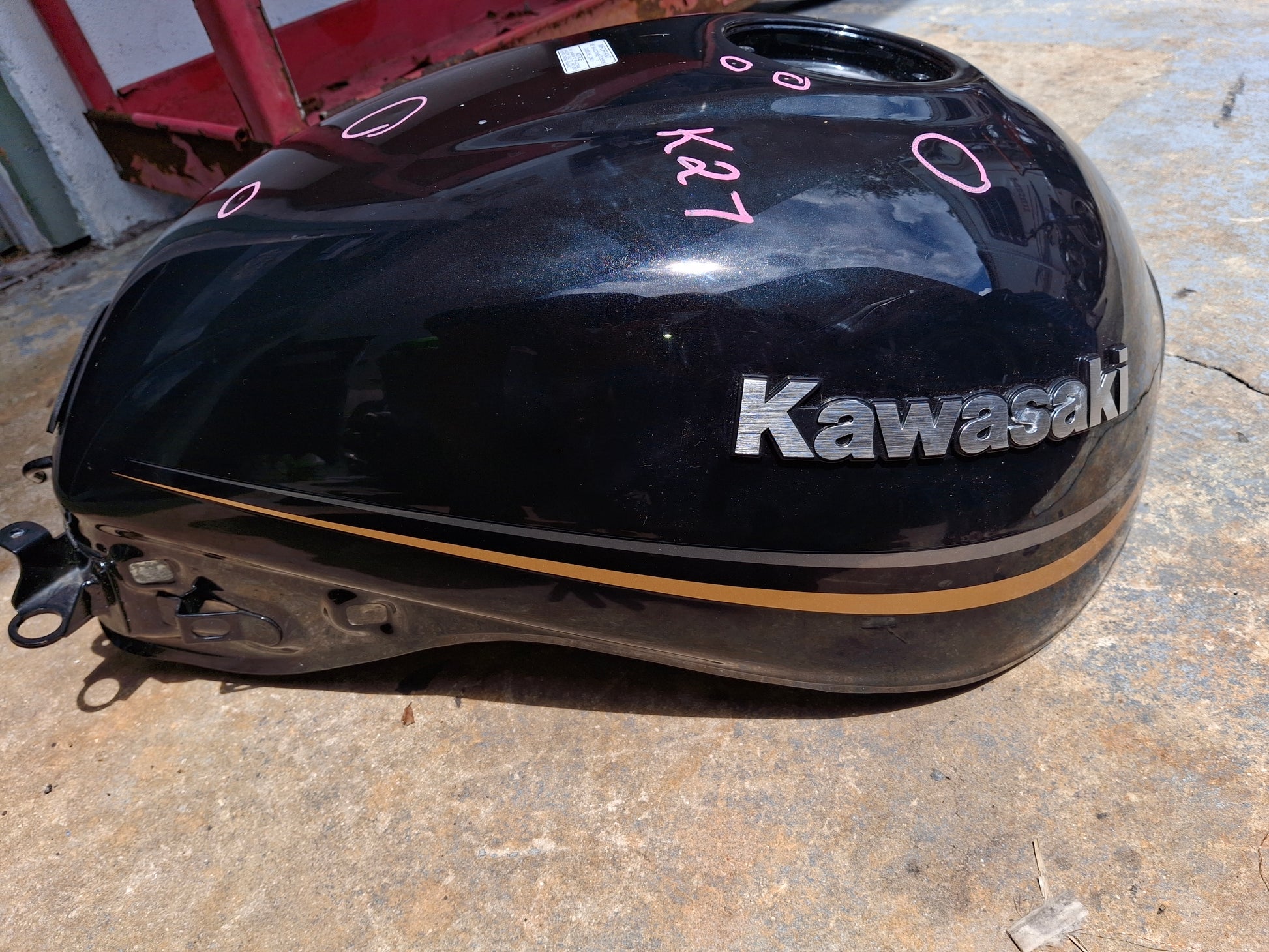 This listing is for the gas tank off of a Kawasaki Z900RS. I believe this tank will fit 2018-2024 models, but please do your own research to be sure prior to purchase. This tank is really very nice. I believe it may have been a dealer take off tank, it must have gotten lightly damaged in shipping or on a test ride so they just traded it out for a new tank. It does have several small dings, and some areas where the paint chipped away a little, which I have circles on the tank so please be sure to look closely at the pictures. The inside of the tank is beautiful. You can see there are some little spots of what looks like rust around the fuel pump hole, I believe that is just from old gas and we will clean it prior to shipping it to you.