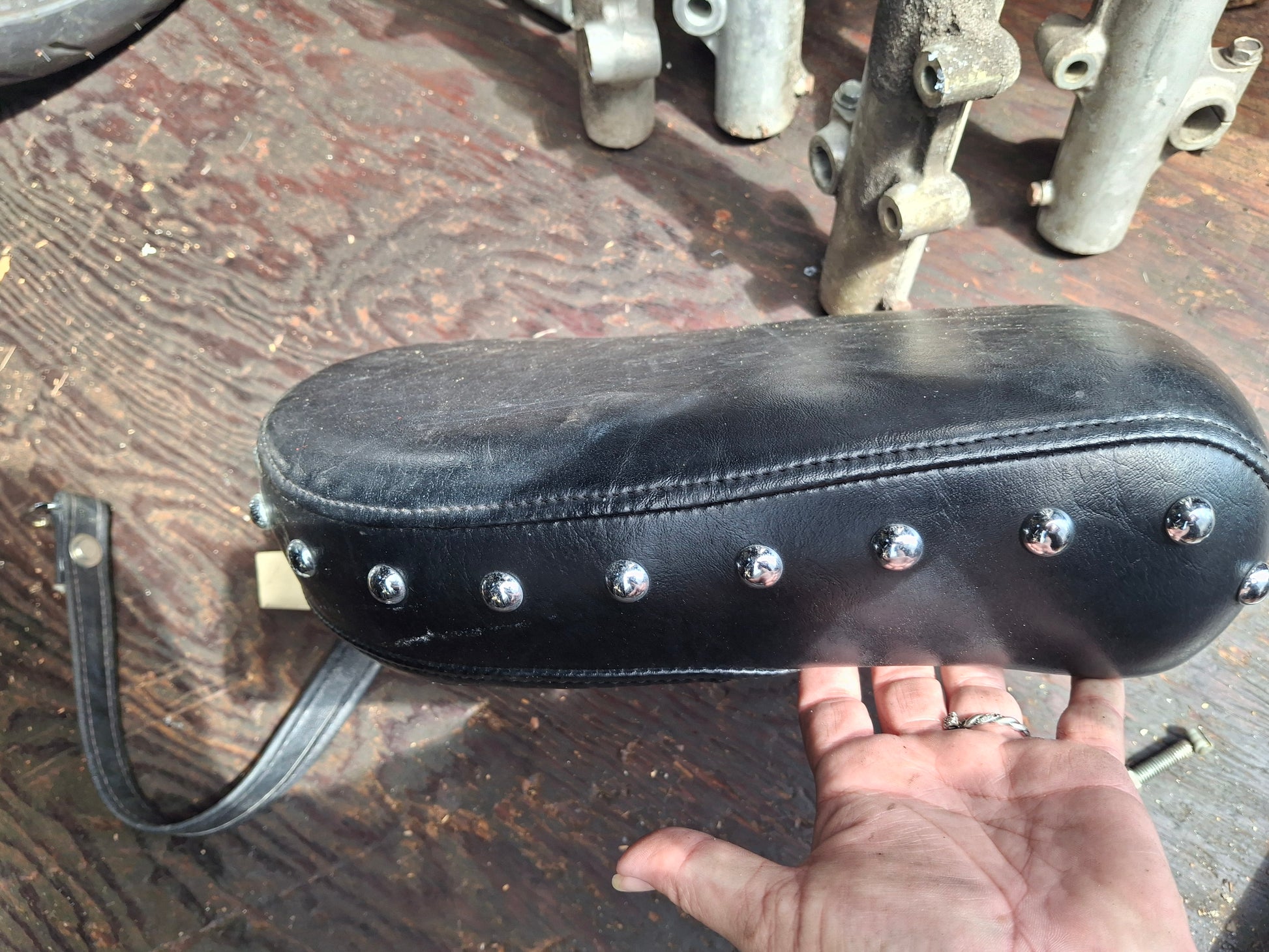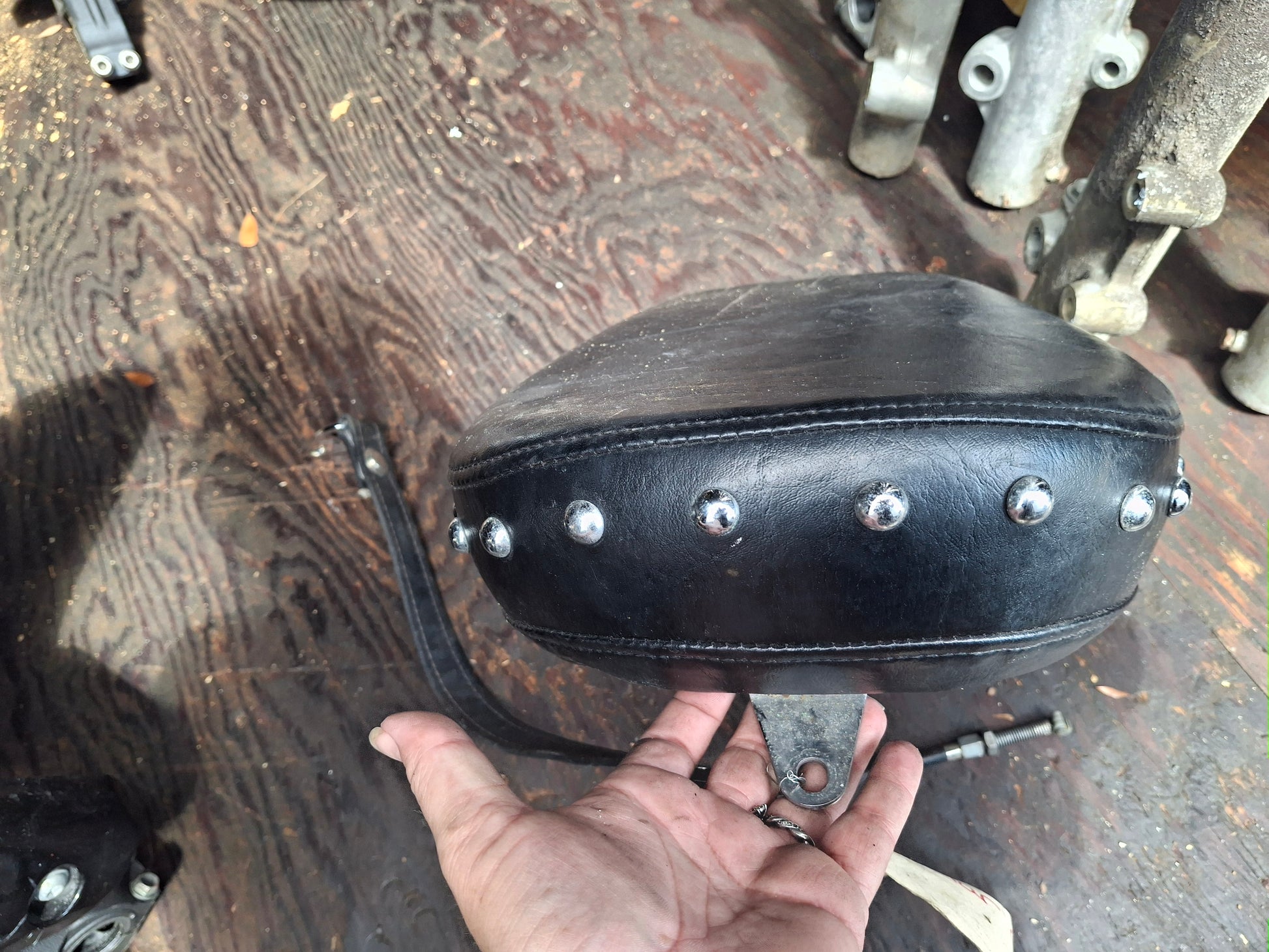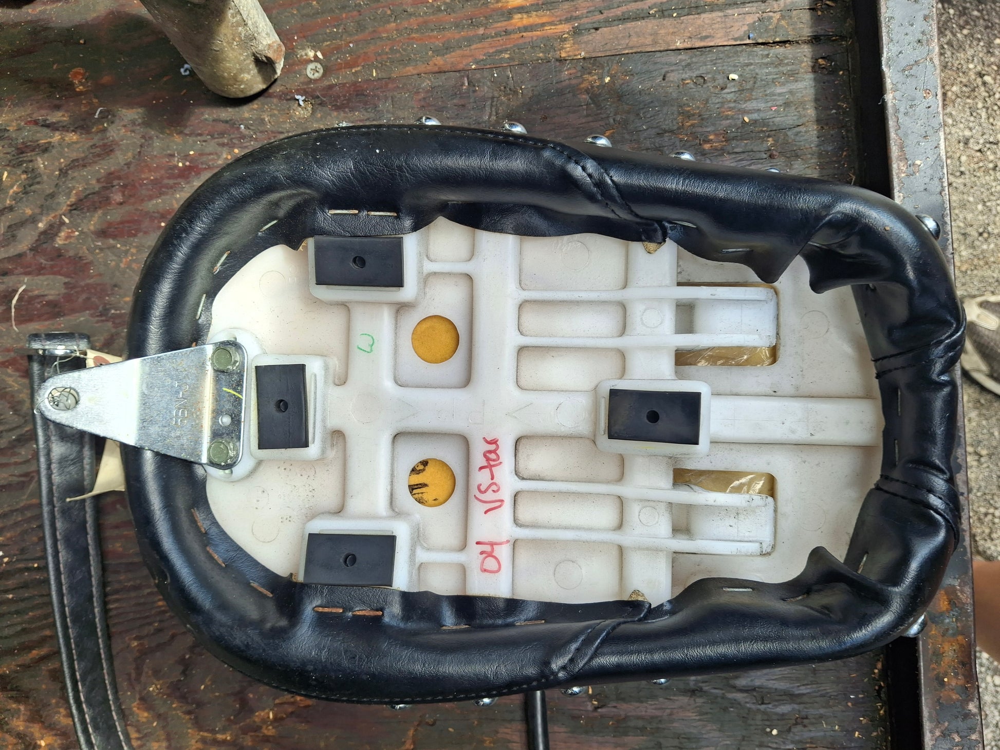 This listing is for the Front seat, Rear seat and Sissy bar off of an 04 Yamaha V-Star 650. It will fit other years. This set is in very nice used condition. There are a few marks on the rear seat that will come off when we clean it prior to shipping, the front seat was sitting on top of it. The sissy bar is missing one stud towards the top of the back pad. Both seats and sissy bar will be cleaned prior to shipping. Please look closely at all pictures and ask all questions prior to purchase.