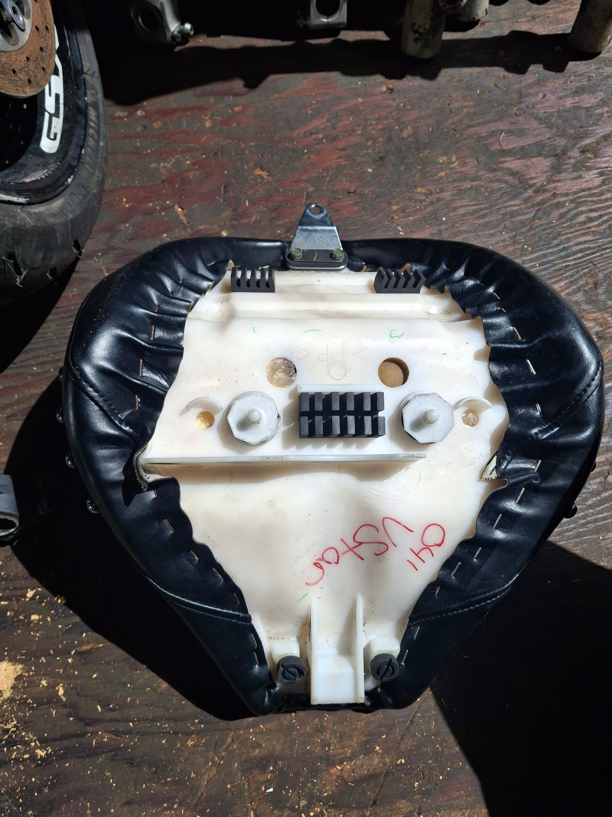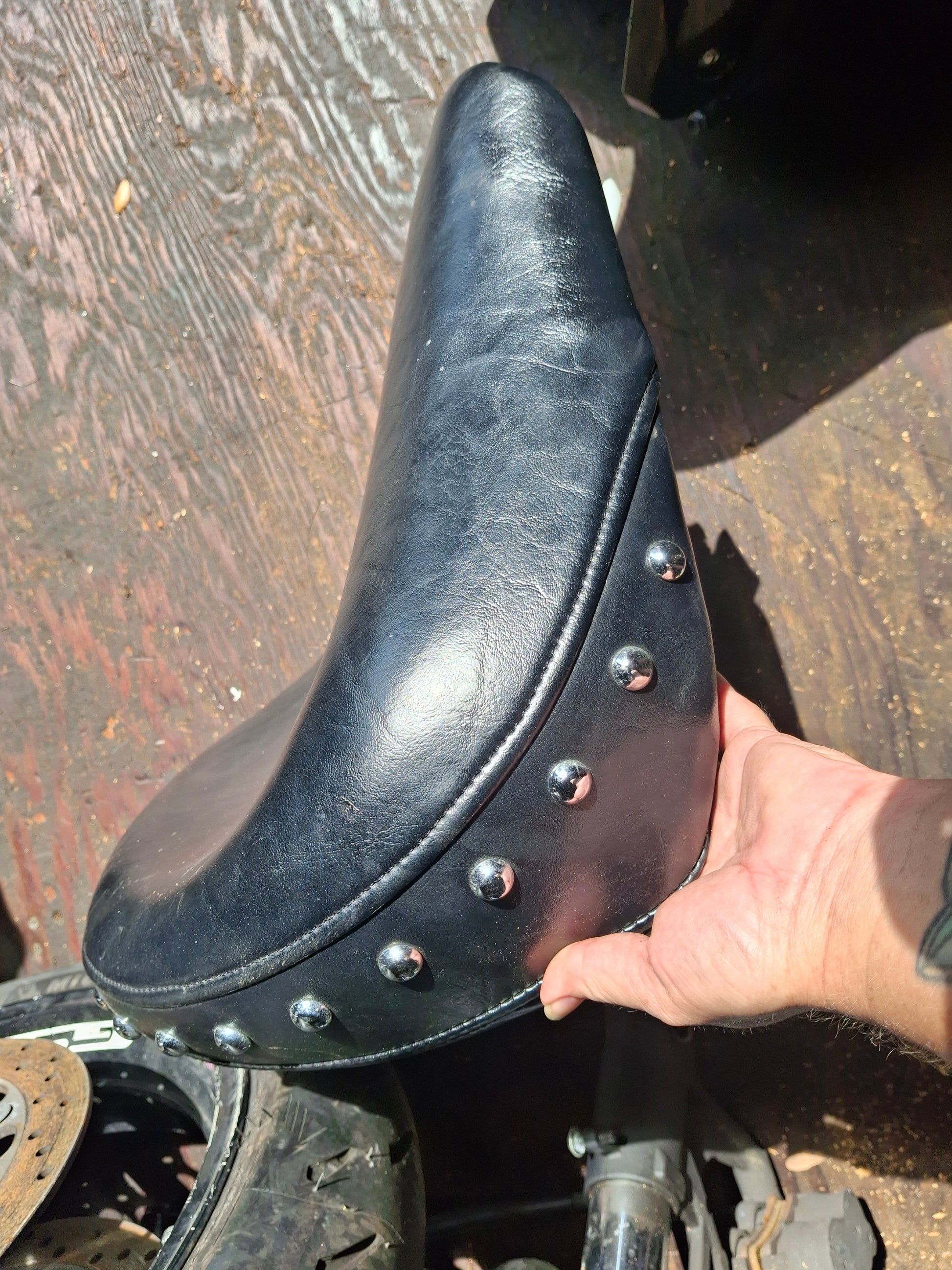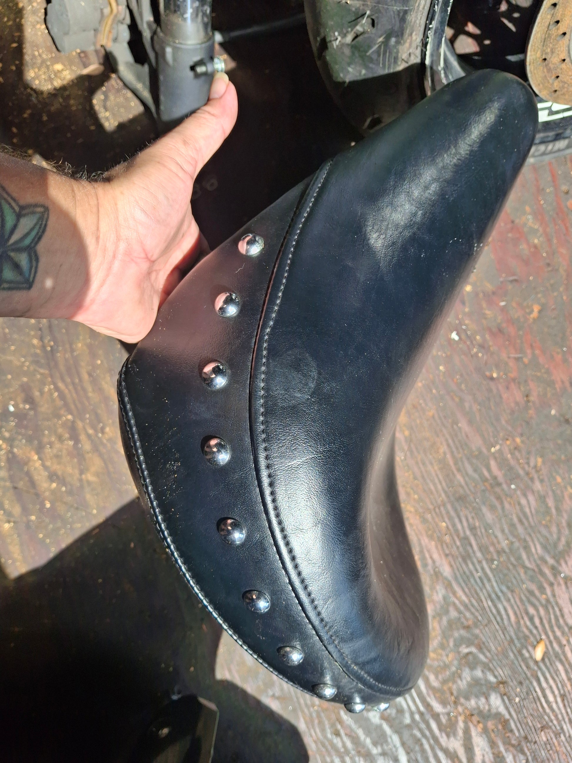 This listing is for the Front seat, Rear seat and Sissy bar off of an 04 Yamaha V-Star 650. It will fit other years. This set is in very nice used condition. There are a few marks on the rear seat that will come off when we clean it prior to shipping, the front seat was sitting on top of it. The sissy bar is missing one stud towards the top of the back pad. Both seats and sissy bar will be cleaned prior to shipping. Please look closely at all pictures and ask all questions prior to purchase.